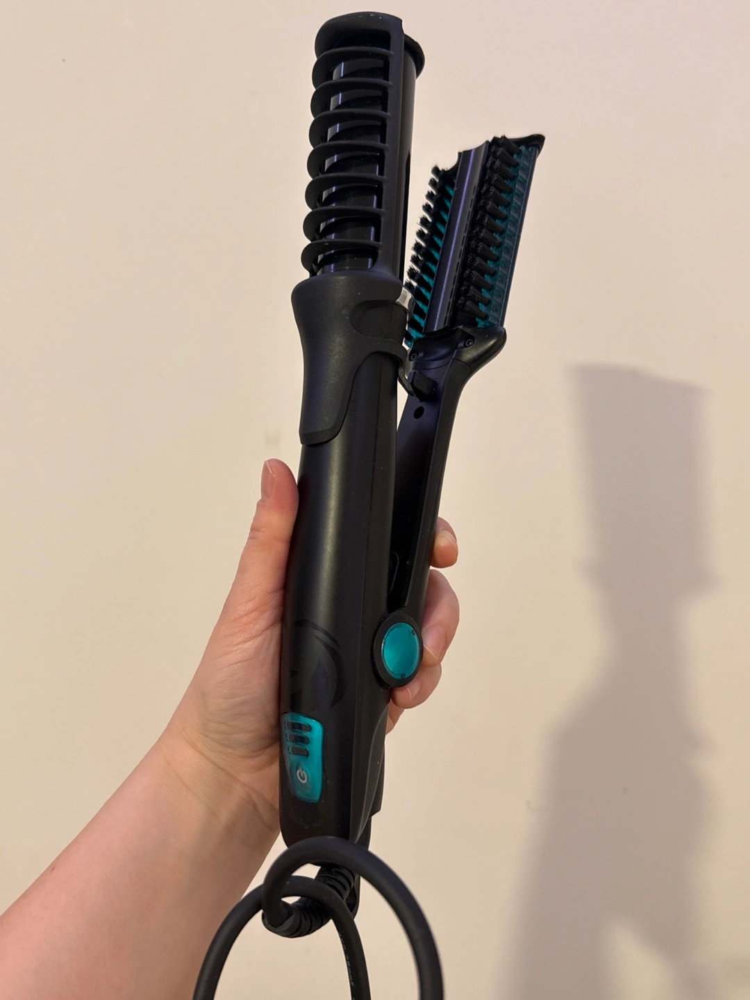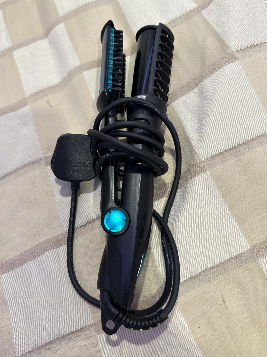 Rotating hot air styler. Black and teal styling tool. Used, good condition. Includes UK plug.