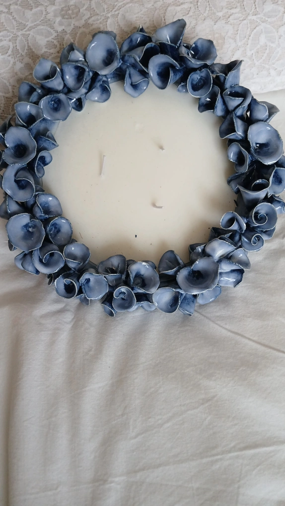beautiful 11" round candle. I bought lastt year at Homesense and I never used it. it needs a new home. Just a few tiny chips but cannot see them on the petals. porch pickup at Dufferin and Bloor st