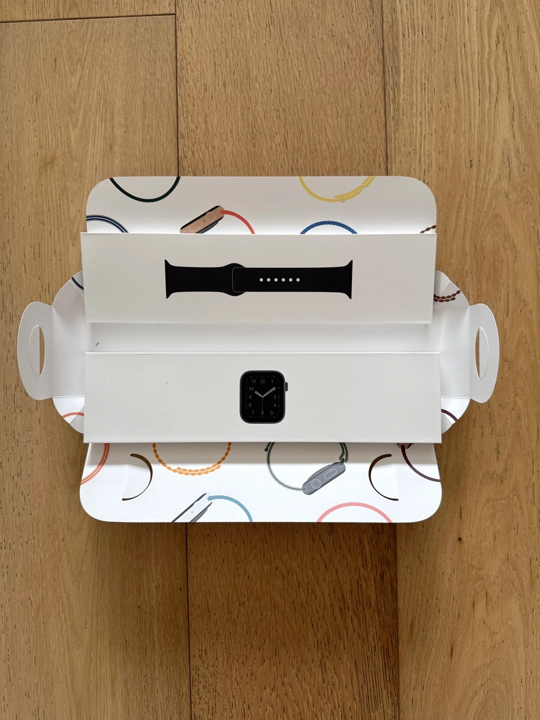 Slightly used, Apple Watch SEin Midnight colour with a black sport band. 40mm case size. Slight scratch barely noticeable bottom right. I wore this for a month and then never used it again in 2021.