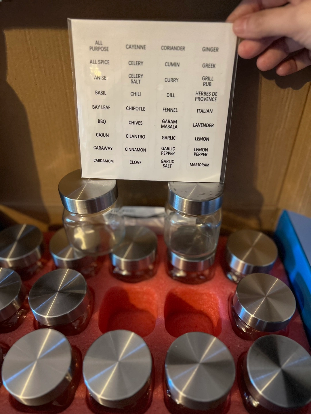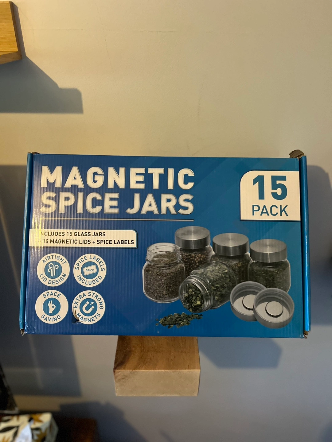 75Check out my other listings Pick up only first come first serve 1842 Morgan Ave., Port Coquitlam Fifteen glass spice jars. Magnetic lids. Includes spice labels. Airtight, space-saving design. Extra-strong magnets.