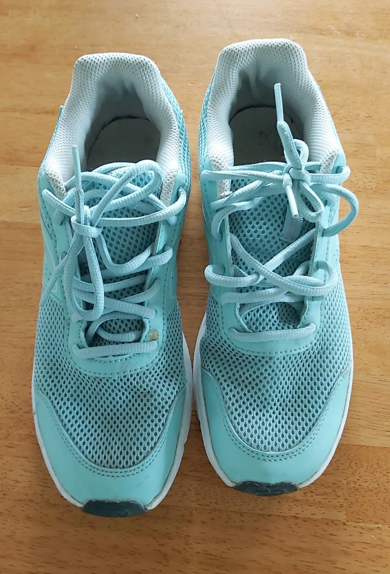 Kalengi used women's running shoes. Teal colour, lace-up closure. Good condition, some minor wear.