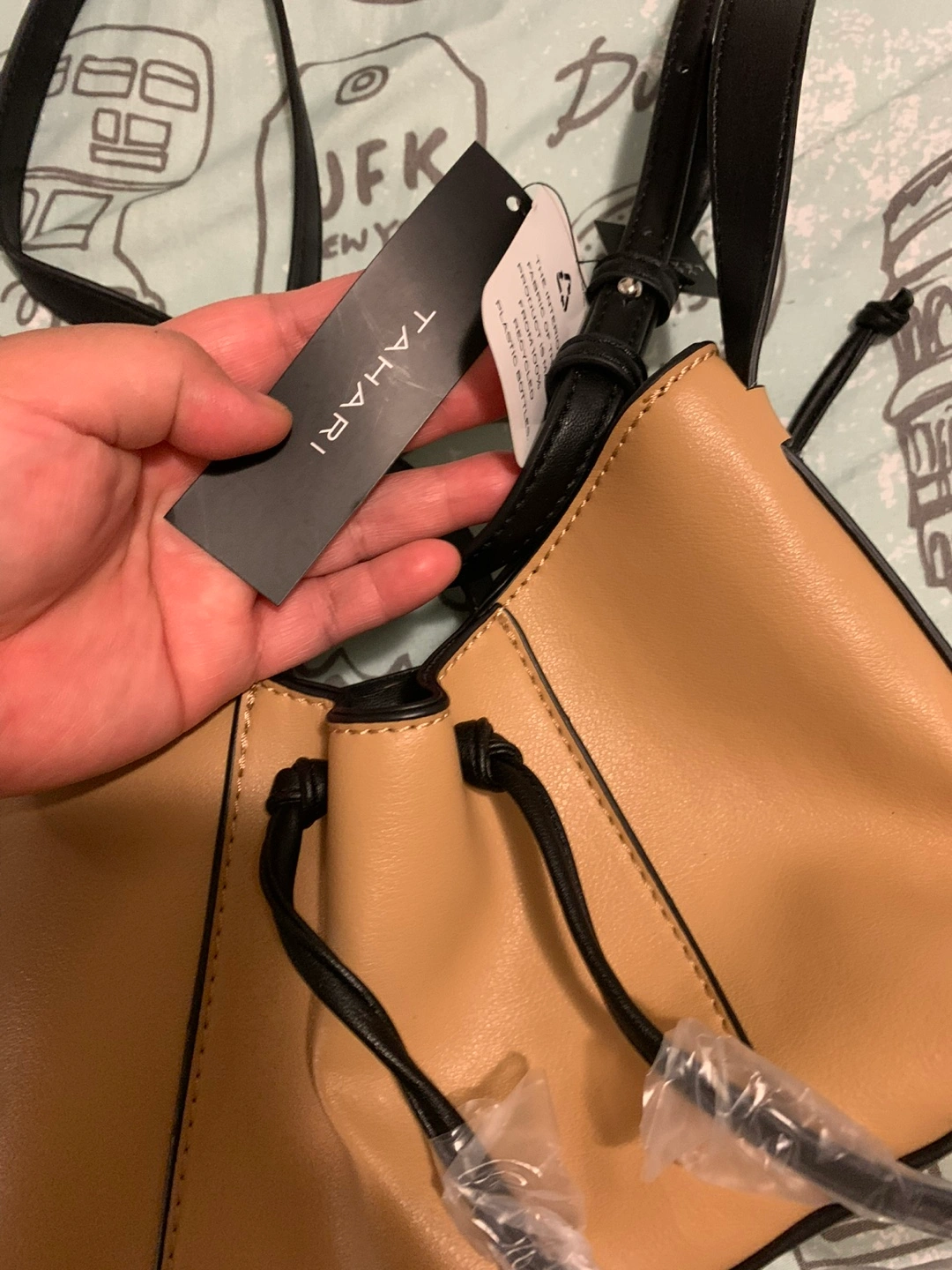 Price is for both. Two mini bags. One brown, one tan and black. Drawstring closure. Adjustable shoulder strap. Perfect for everyday use.