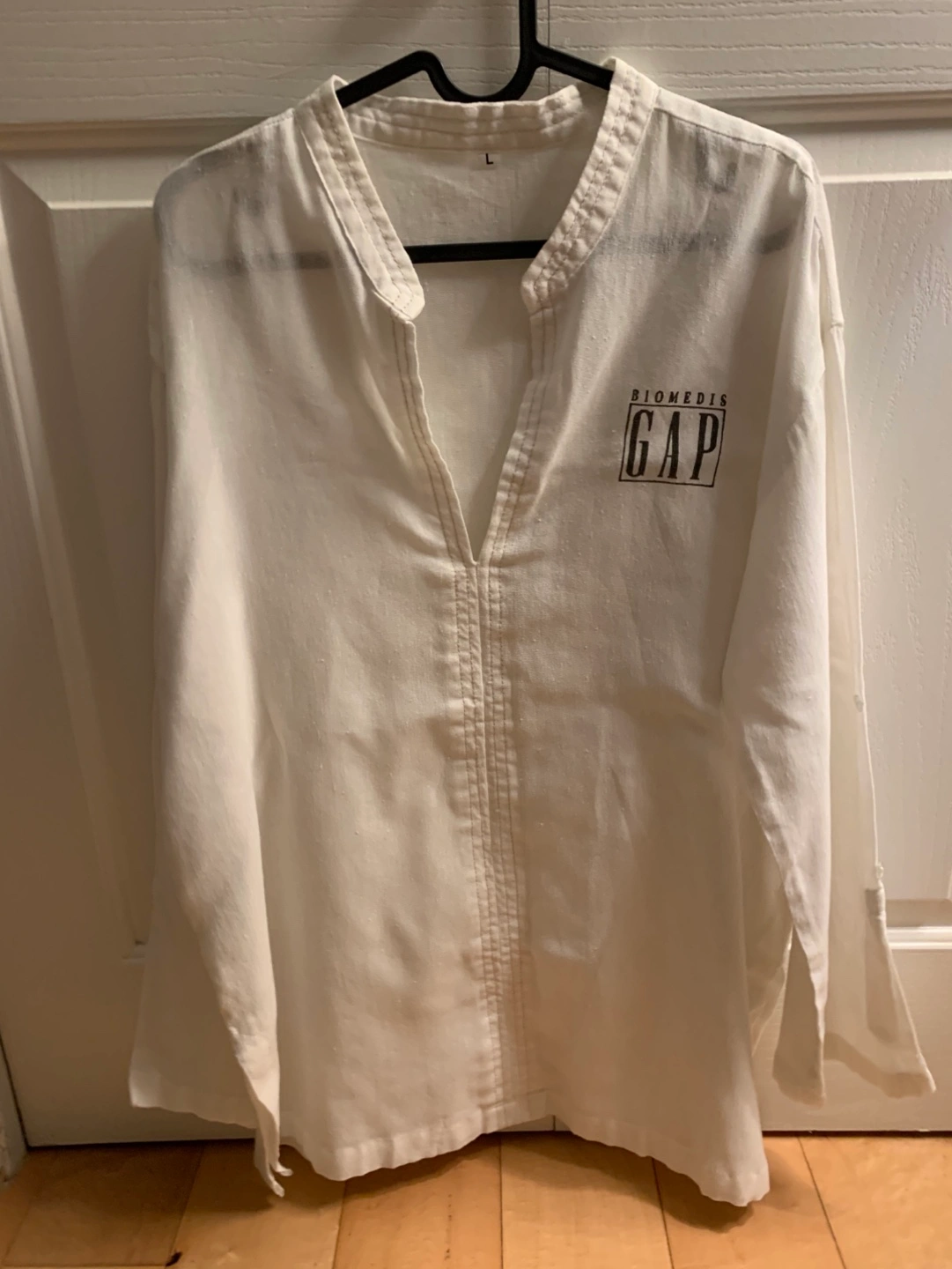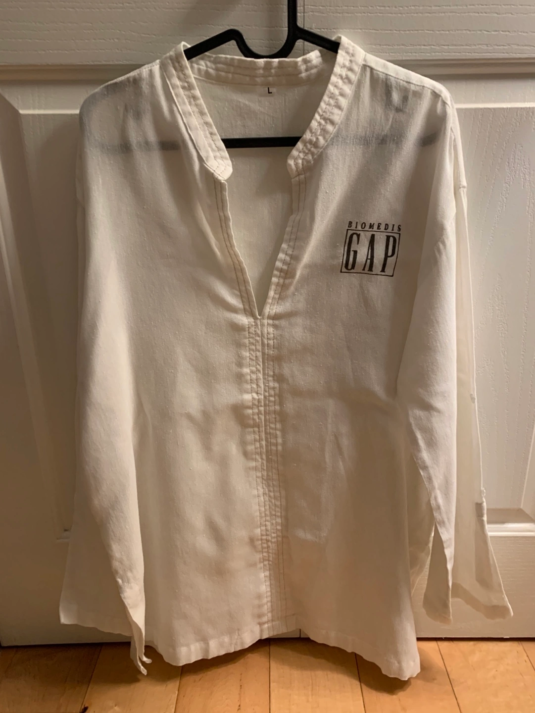 Size Large. Features a V-neck and adjustable sleeves (see photos)