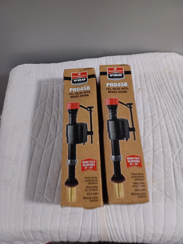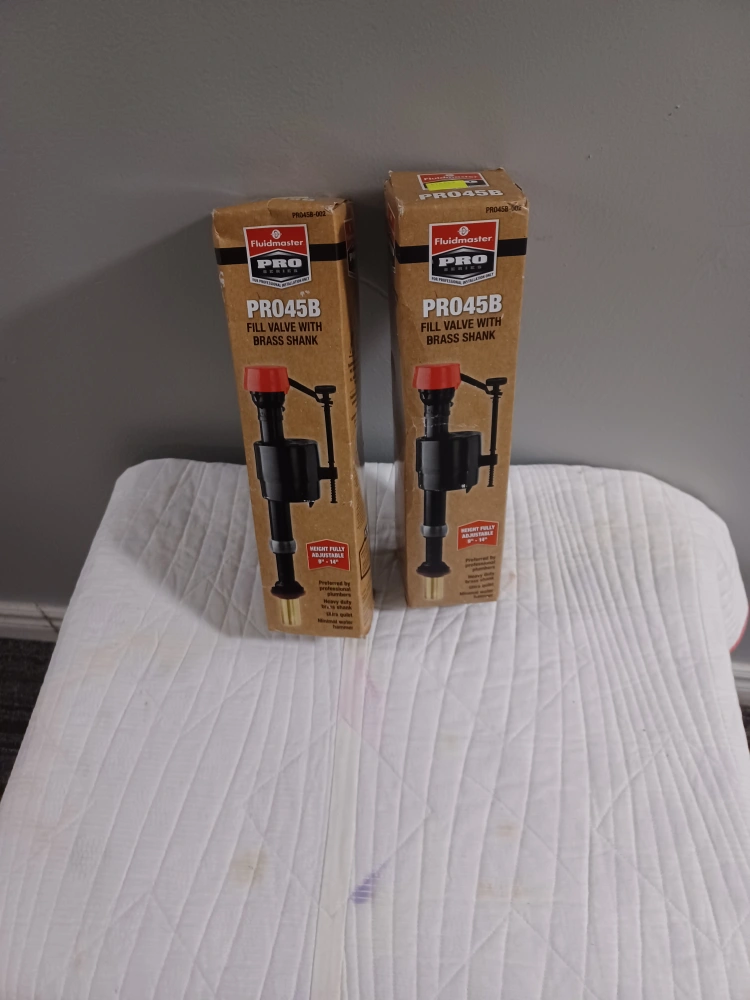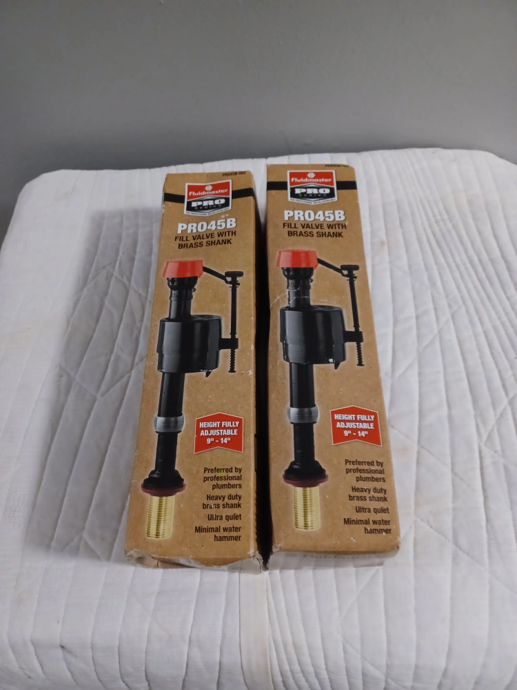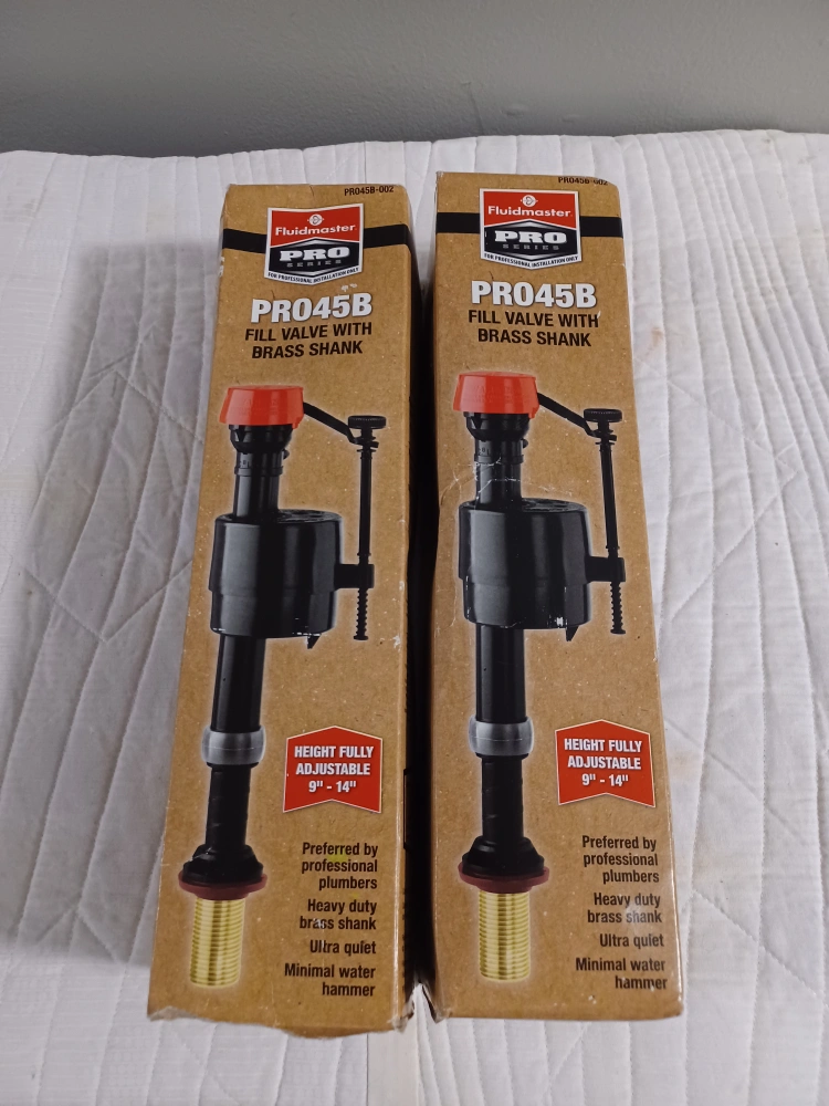 Two new Fluidmaster PRO45B fill valves. Height fully adjustable 9"-14". Heavy duty brass shank. Ultra quiet. Minimal water hammer. Preferred by professional plumbers.