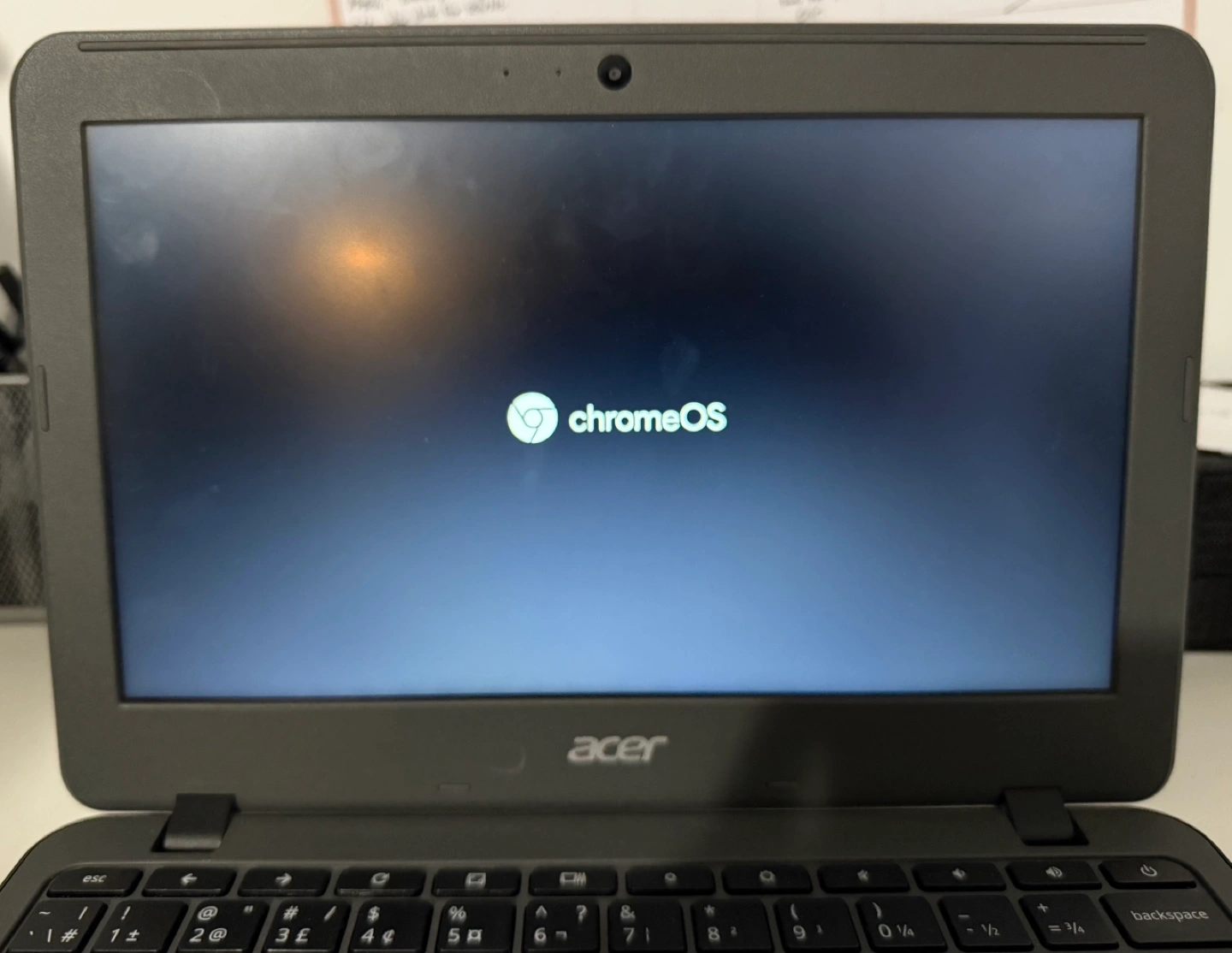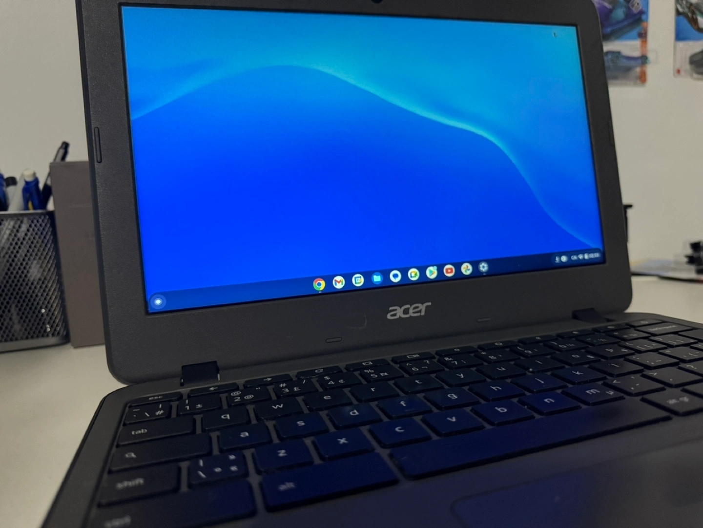 Chromebook laptop. Runs ChromeOS. Small and portable. Good for students or casual users. Includes charger. Laptop is in good condition