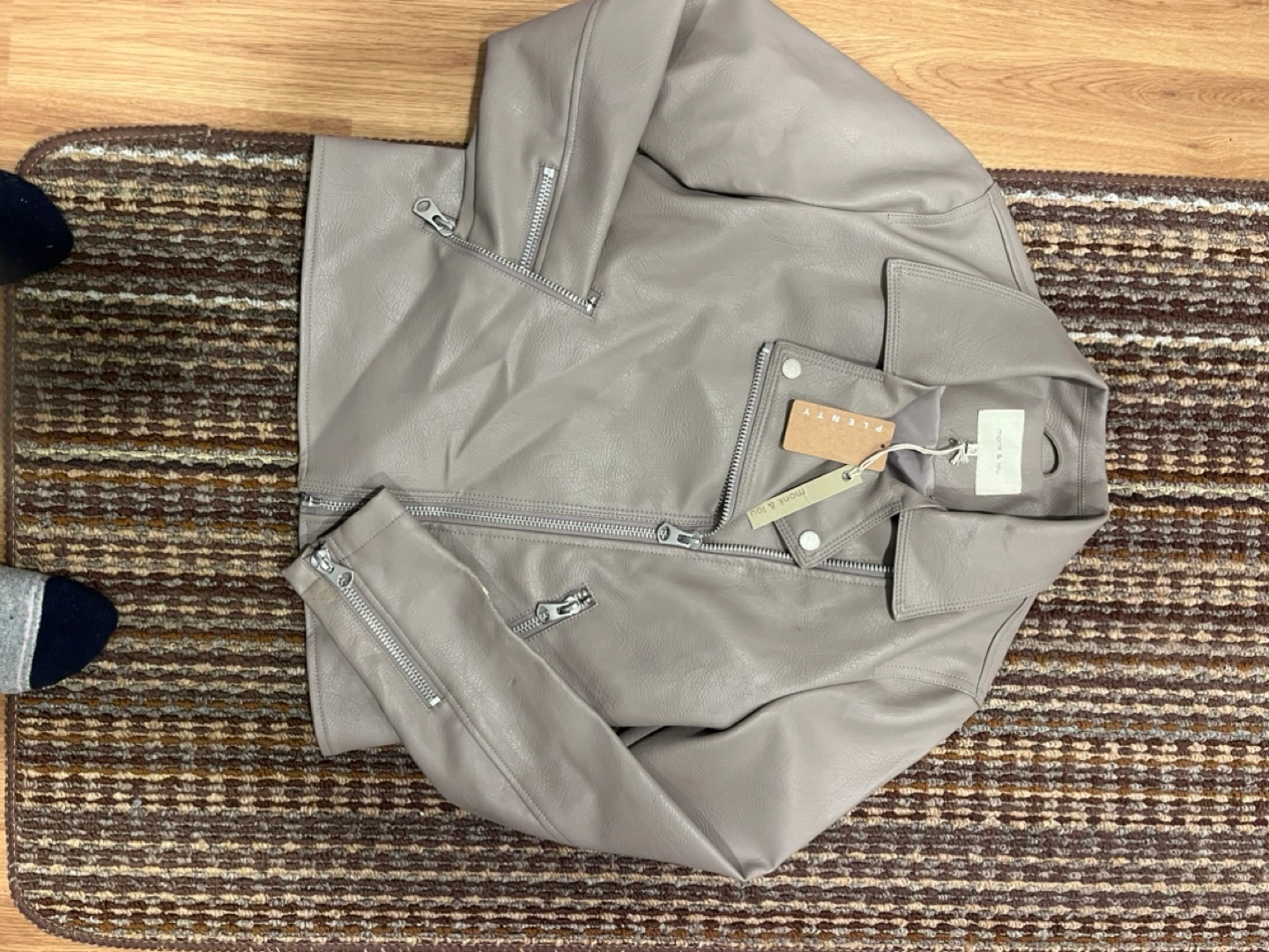 Plenty by Monk & Lou Taupe Faux Leather Moto Jacket