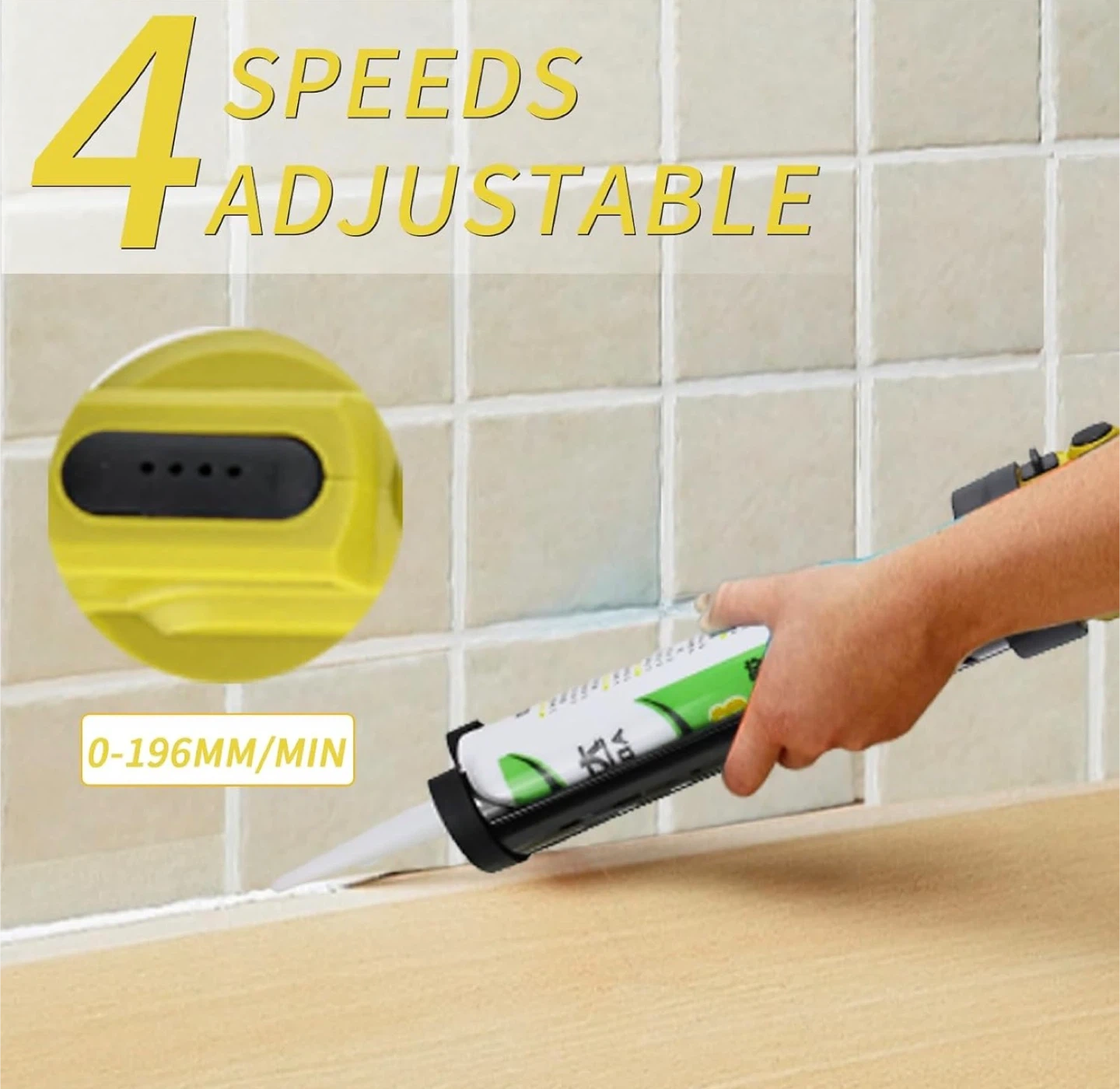 Cordless Caulking Gun for Dewalt 20V Batteries,No-Drip Caulking Gun with LED Light,10oz/300ml,4-speed Adjustable Caulking Gun,Filling and Sealing Tool for Windows,Doors,Floors and Walls.