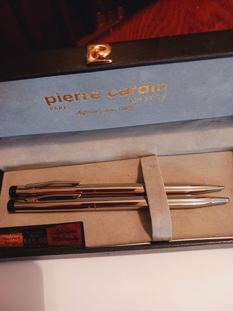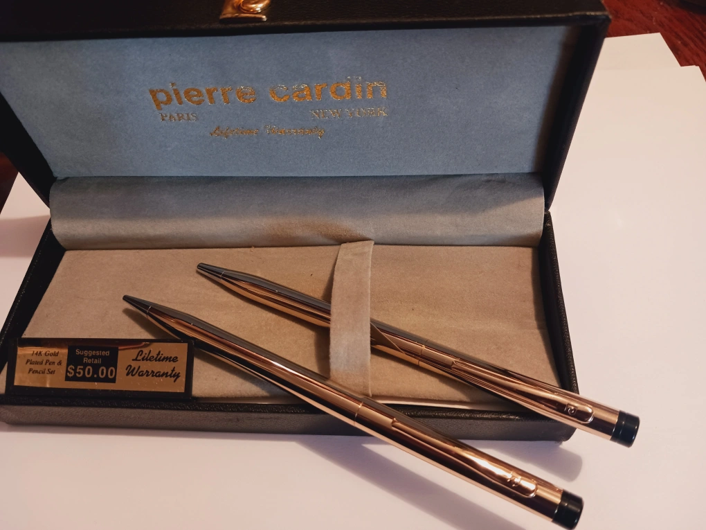 14K GOLD PLATED PIERRE CARDIN SET OF π π PENS IN ORIGINAL BOX. Includes original box and lifetime warranty card. Elegant design. ALL MY PRICES ARE NEGOTIABLE !!!