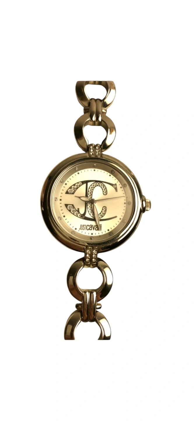293Just Cavalli Silver Stainless Steel Midnight R725315454 Women's Wristwatch Women's watch. Round face. Crystal accents. Just Cavalli branding on face and clasp. Need battery