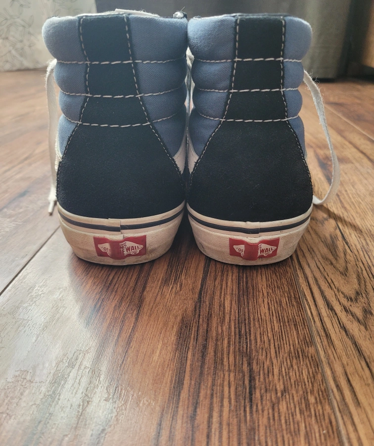 Pre-owned Vans Sk8-Hi high top sneakers. Blue and black colourway. Classic design.