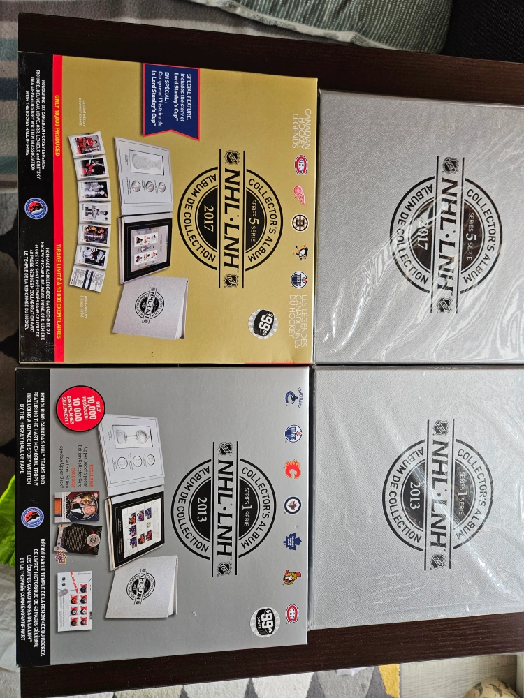 Two limited edition NHL Collector's Albums. 2013 and 2017 series. Includes special features and limited edition cards. Mint condition. Collectible.