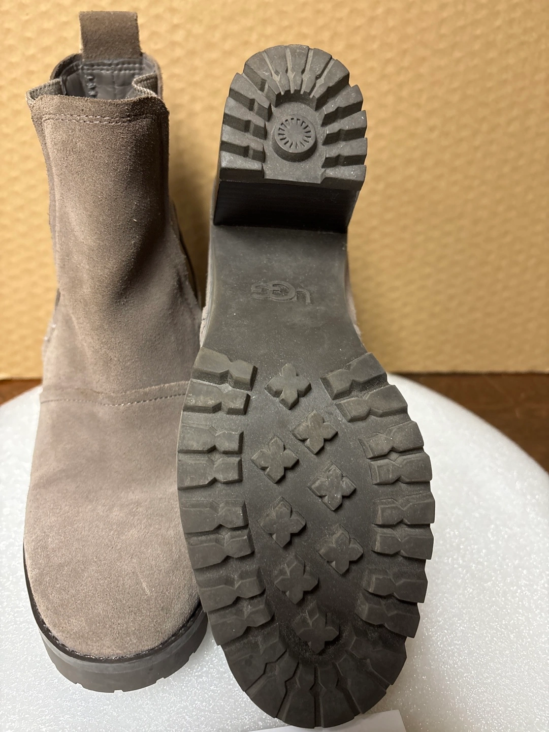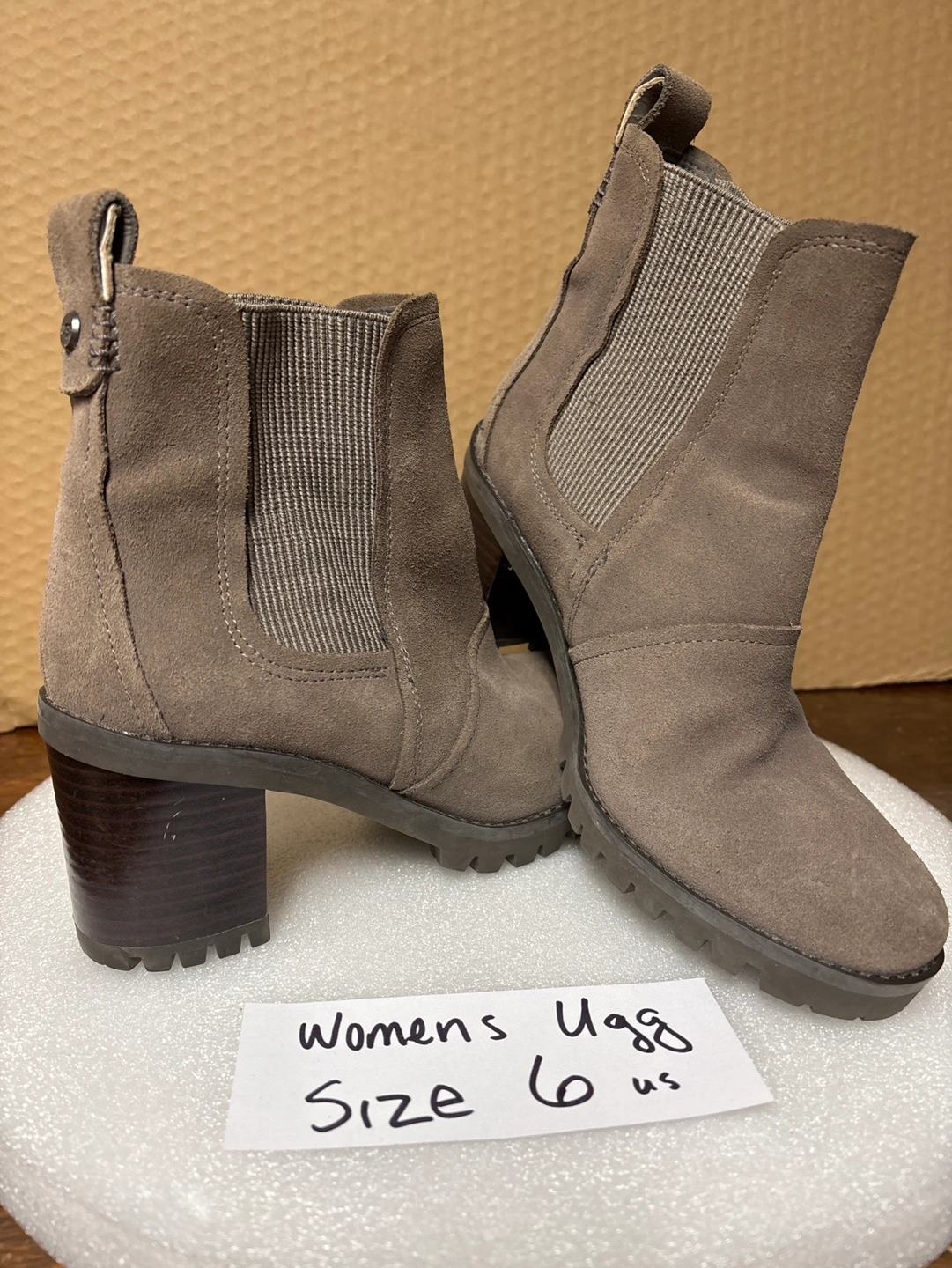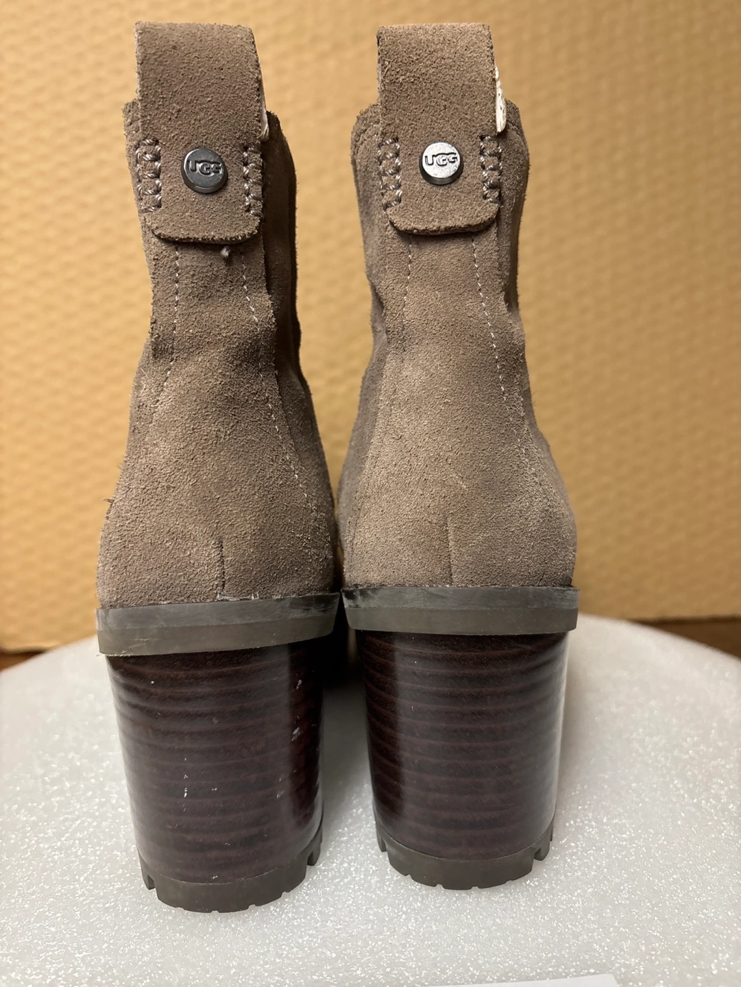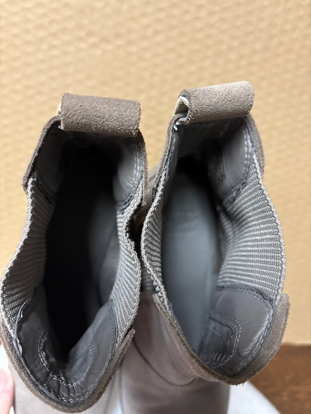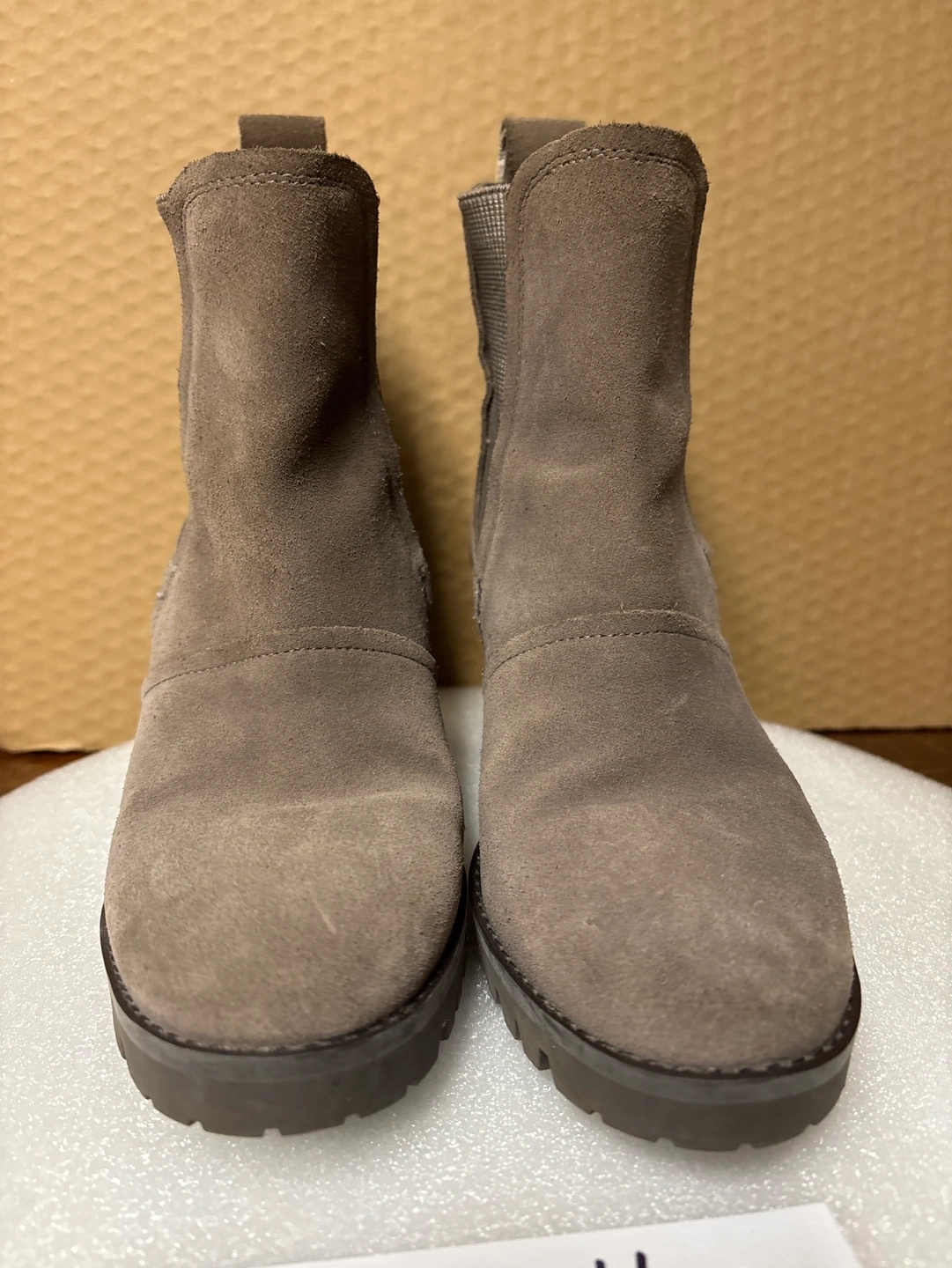 91Gray suede ankle boots. Block heel. Elastic side panels. Size 6 US. Used Great condition