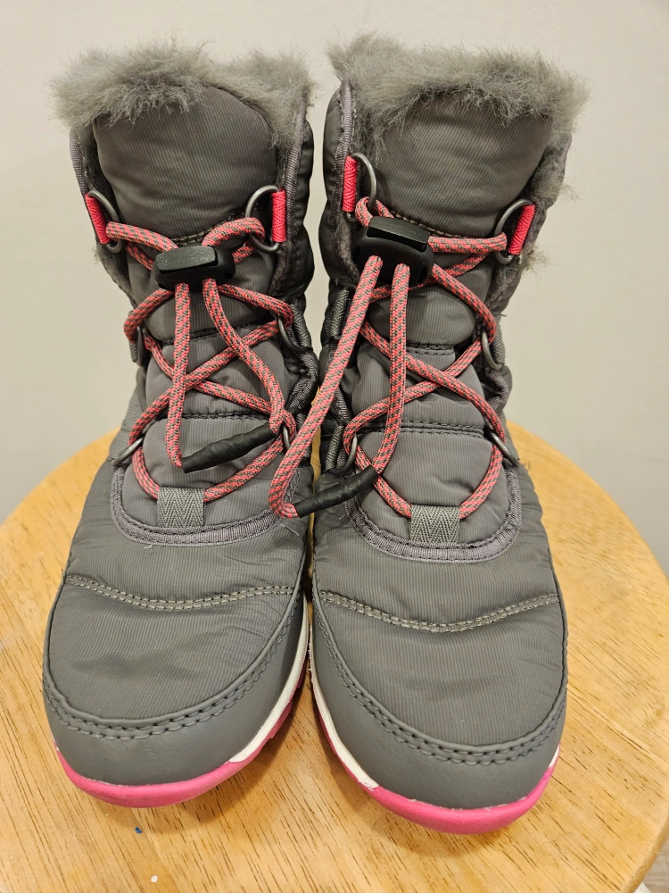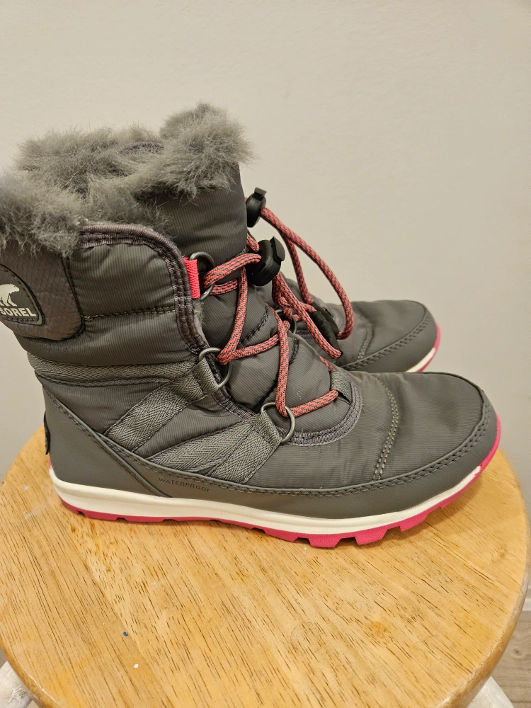 Like NEW, Sorel girls Youth Whitney Short Lace Snow Boot. Lace-up style, waterproof, faux fur trim. Great for snow and cold weather. Size US 3. I think my daughter wore them less than 5 times. so, they are almost new.