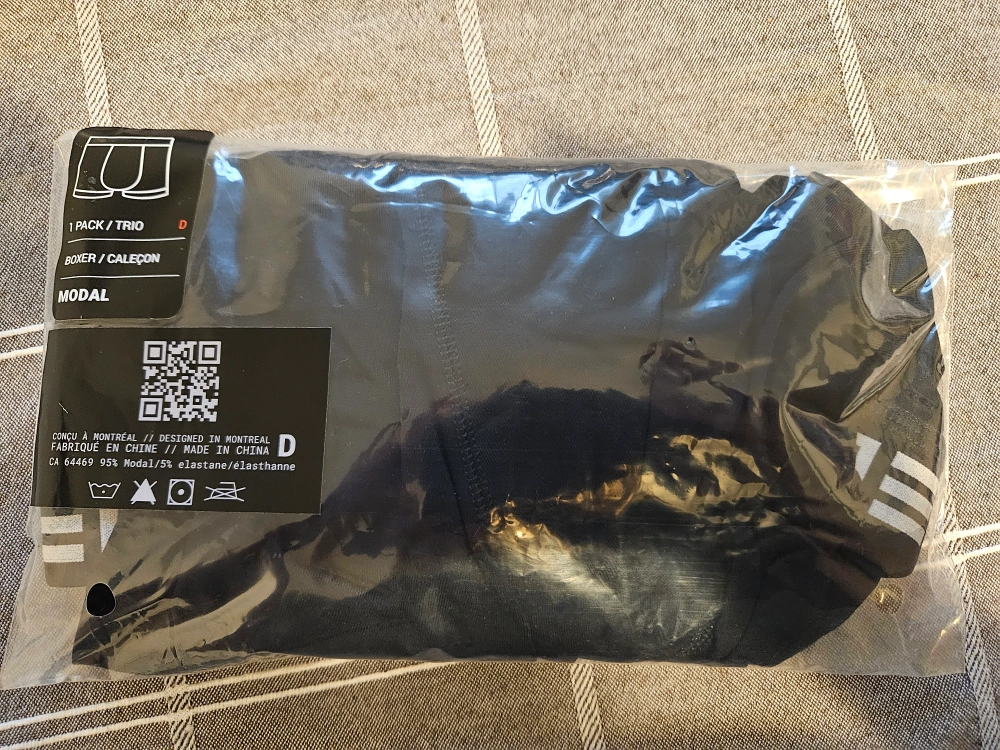 New ONEBONE Everyday Wear Boxer Brief. Black. Size D. Modal and elastane blend. Designed in Montreal, made in China.