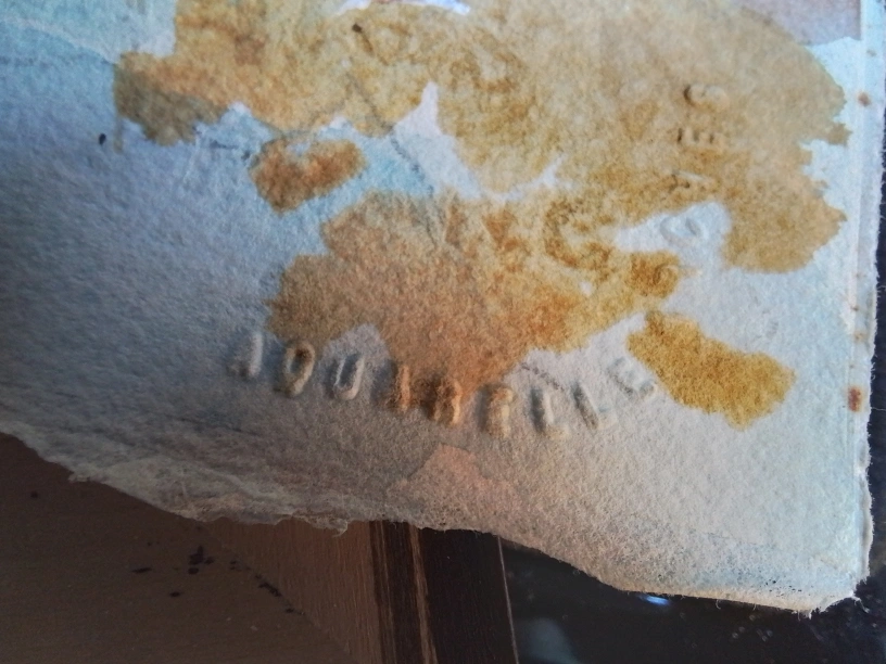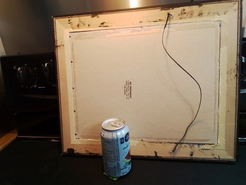Vintage framed watercolor painting. Depicts a country scene with houses and trees. Artist's signature visible.