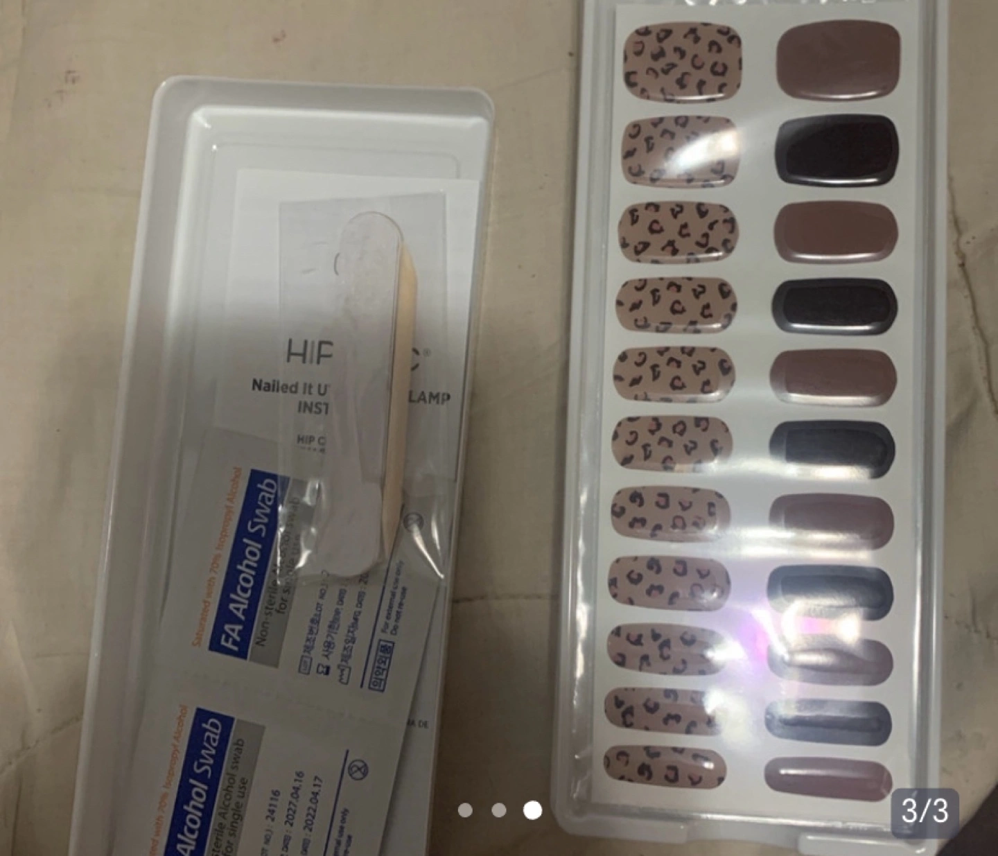 20 semi-cured gel nail strips. Leopard print design. Includes alcohol prep pads and wooden cuticle pusher. Easy at-home application. Long-lasting.