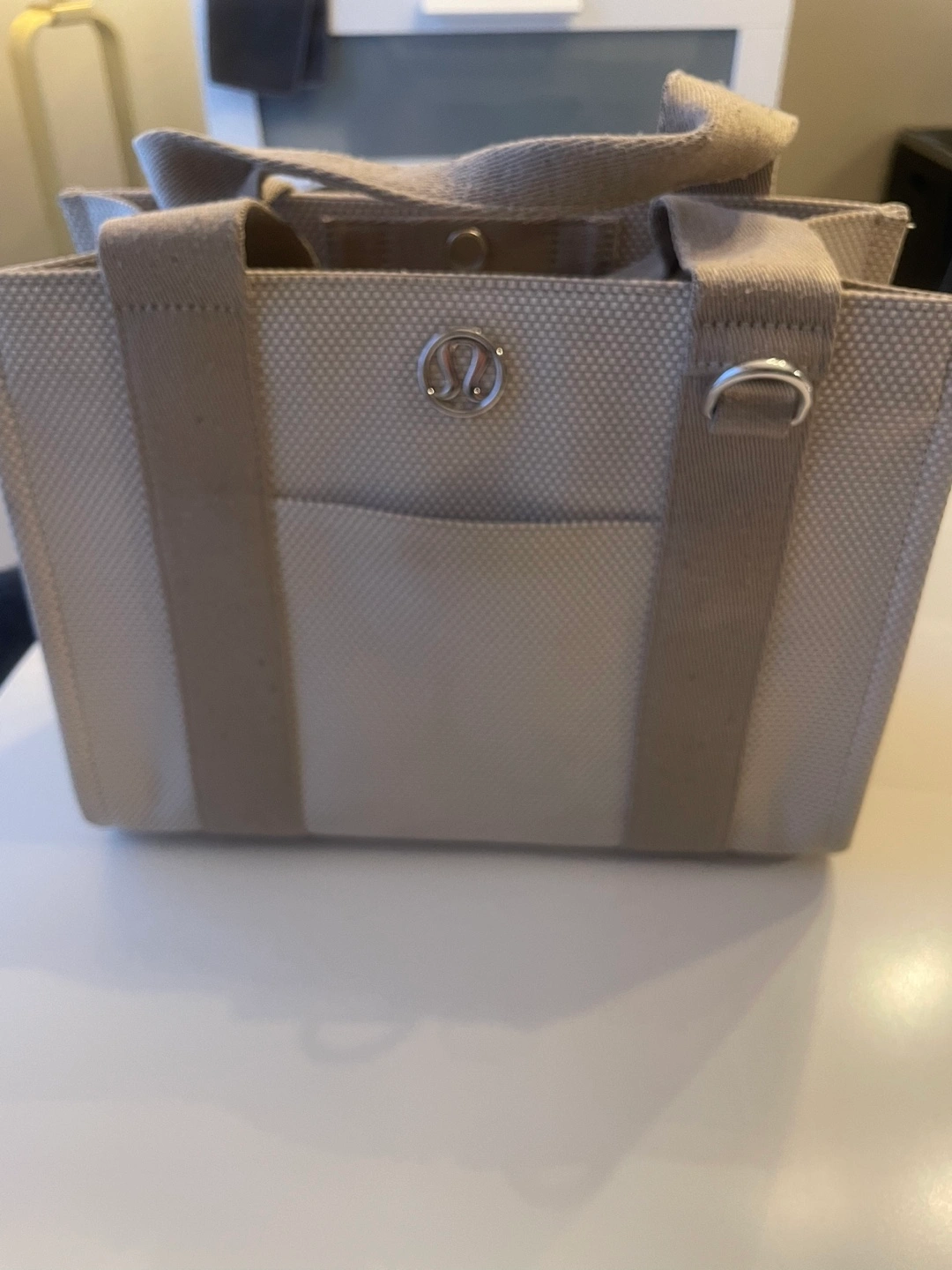 Lightweight tote bag. Perfect for everyday use. Features a small front pocket and sturdy straps. Excellent condition.