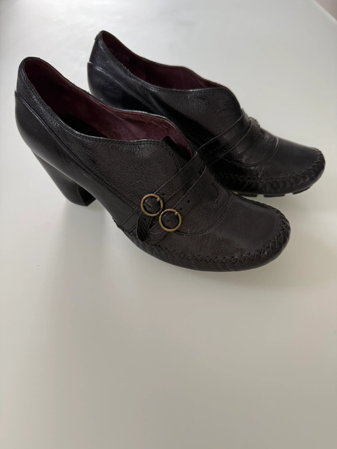 These are Indigo by Clarks black leather heels in good condition. They have a stylish design and are comfortable to wear. Perfect for dressing up or down! Never worn outside. Pick up is Coxwell and lower Gerrard.