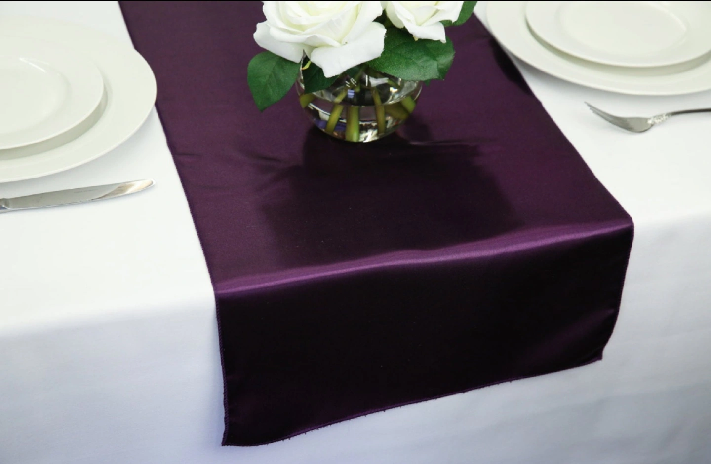 711Eggplant/Plum Table Runners Qty: 15 Dimensions: 10’ length, 12” width Used for one event and in fabulous condition. Pick up from a smoke free home near Browns Line & Lakeshore Boulevard in Etobicoke (Toronto/Mississauga).