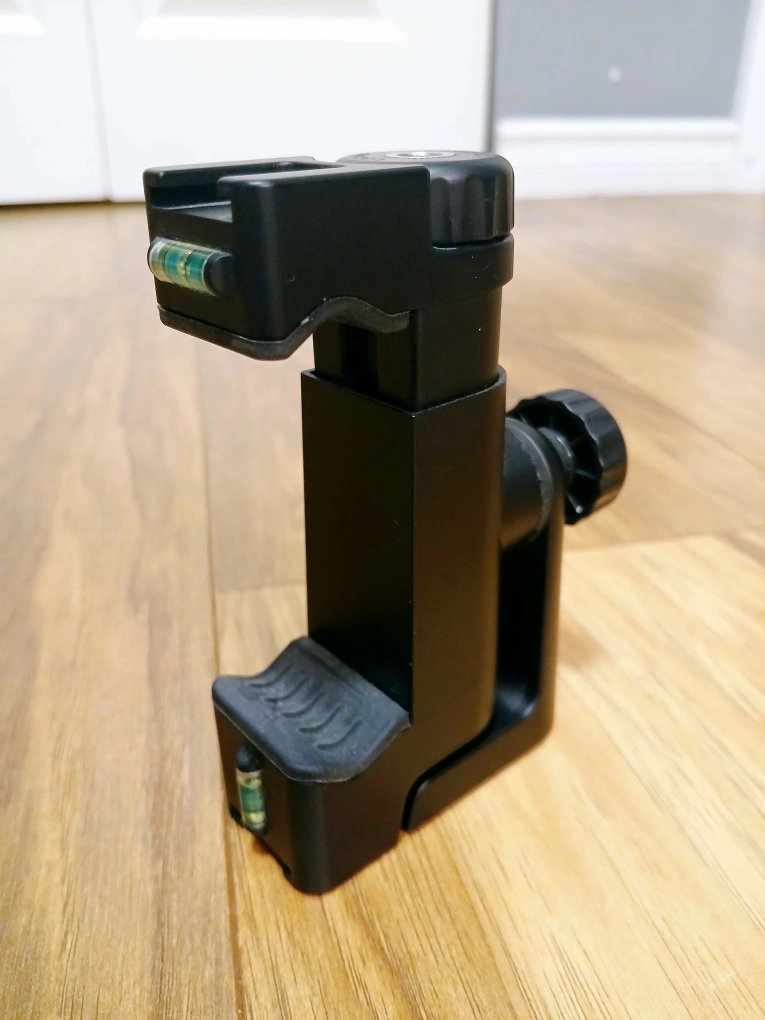 Proffesional level, rubber grip holder. Flips vertical and horizontal. Adjustable knob for any size phone. Attach it to any tripod. Material: Plastic (Available Now!) π