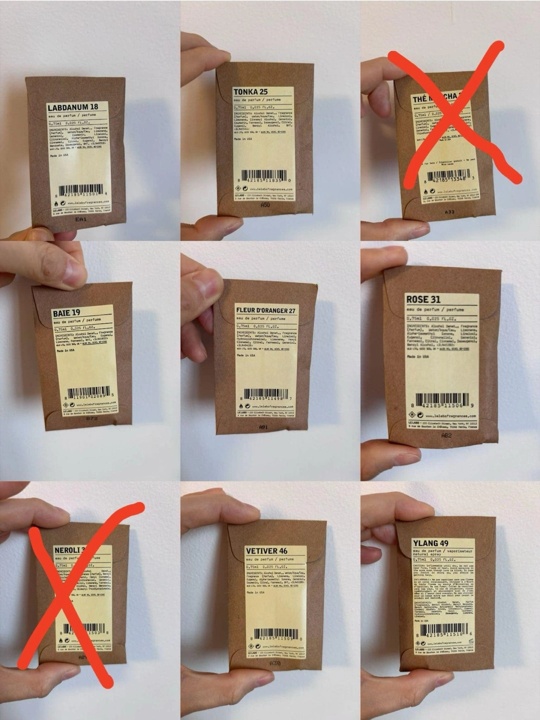 Set of Le Labo perfume samples. Various scents included. Small sample sizes, perfect for trying before committing to a full bottle.