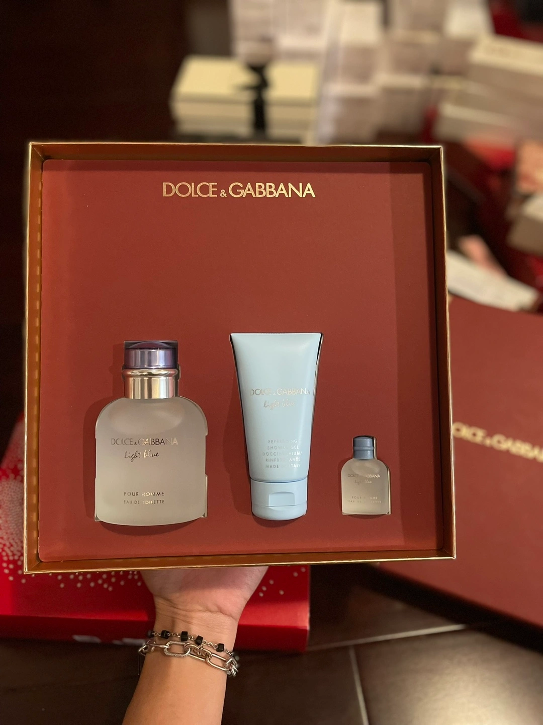 Dolce & Gabbana Light Blue gift set. Includes Eau de Toilette, shower gel, and a smaller Eau de Toilette bottle. New, in box.
