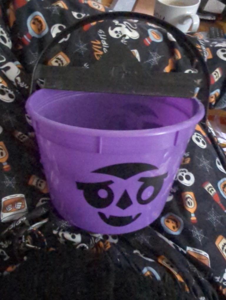 Adorable purple plastic bucket. Features a cute vampire face. Perfect for collecting candy.Mcdonalds colab for Halloween.Asking $4.Cash or etransfer.Pick up in Oakville.Thank you for looking.