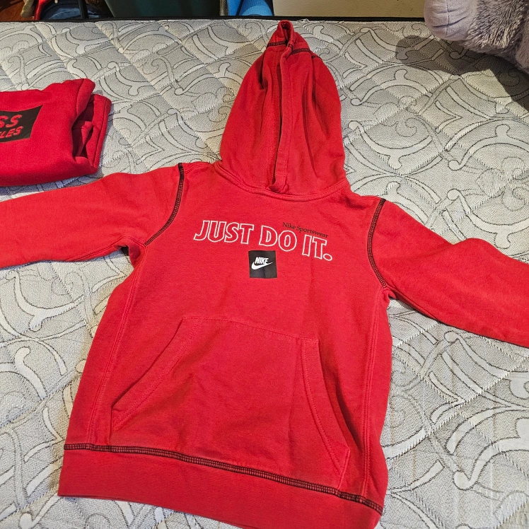 10Red Nike Sportswear hoodie. Features a large "Just Do It" graphic on the front. Size small. Good condition.