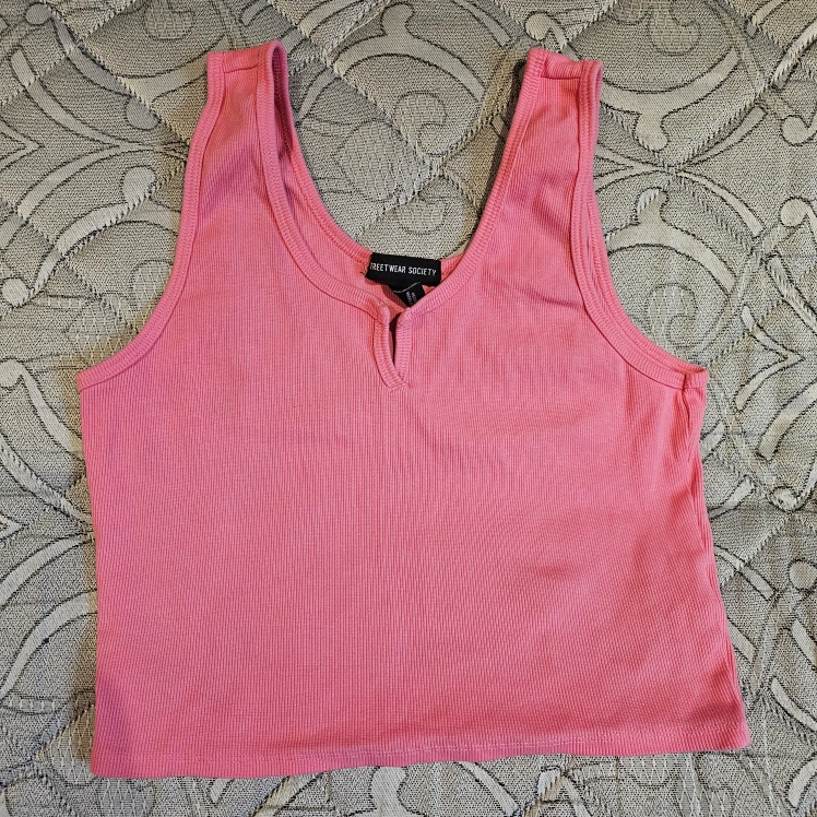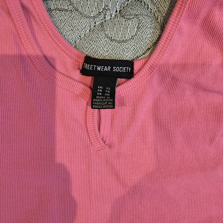 10Women's pink ribbed crop tank top. Small keyhole neckline. Size XL. Made in Bangladesh.