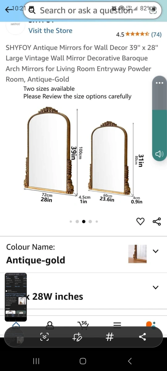Large vintage wall mirror. Decorative Baroque style. Perfect for living room or entryway. Two sizes available. Antique-gold colour. Please check dimensions.