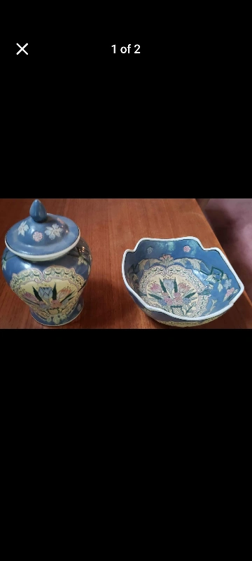 Vintage Asian-inspired Porcelain Jar and Bowl Set