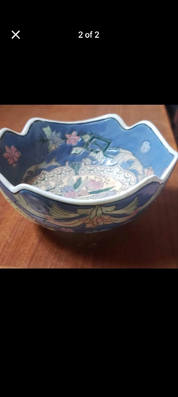 Beautiful vintage porcelain jar and bowl set. Blue and white colour scheme. Floral designs. Perfect for displaying or using as decorative storage. Used, like new, bowl has design inside & outside, $30, pick up only, please see my other listings.
