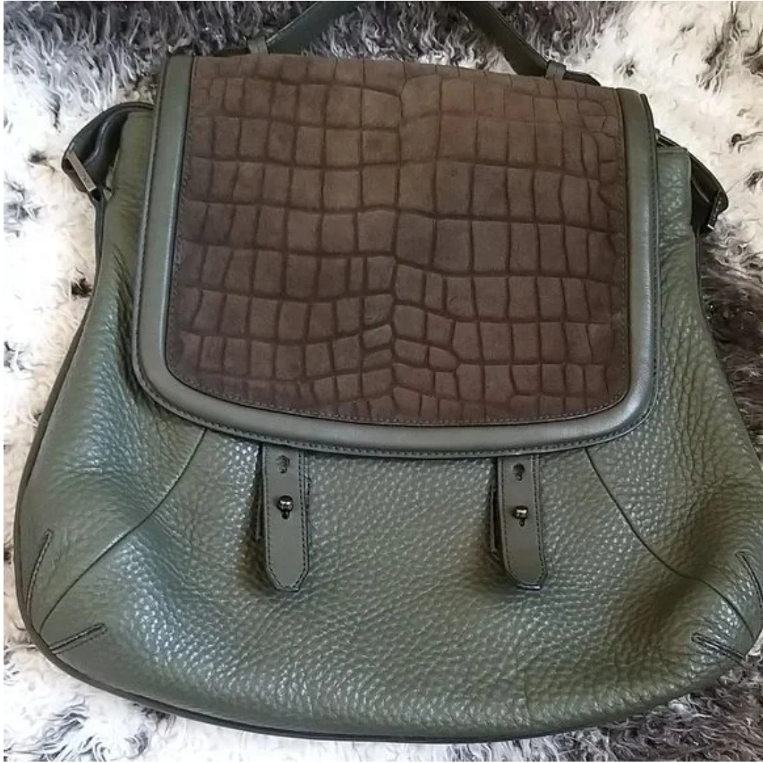 Selling a beautiful Mackage satchel in olive green. Can be worn as crossbody. It features a unique crocodile-embossed flap. The leather is in great condition and has a lovely texture. Perfect for adding a touch of sophistication to any outfit!