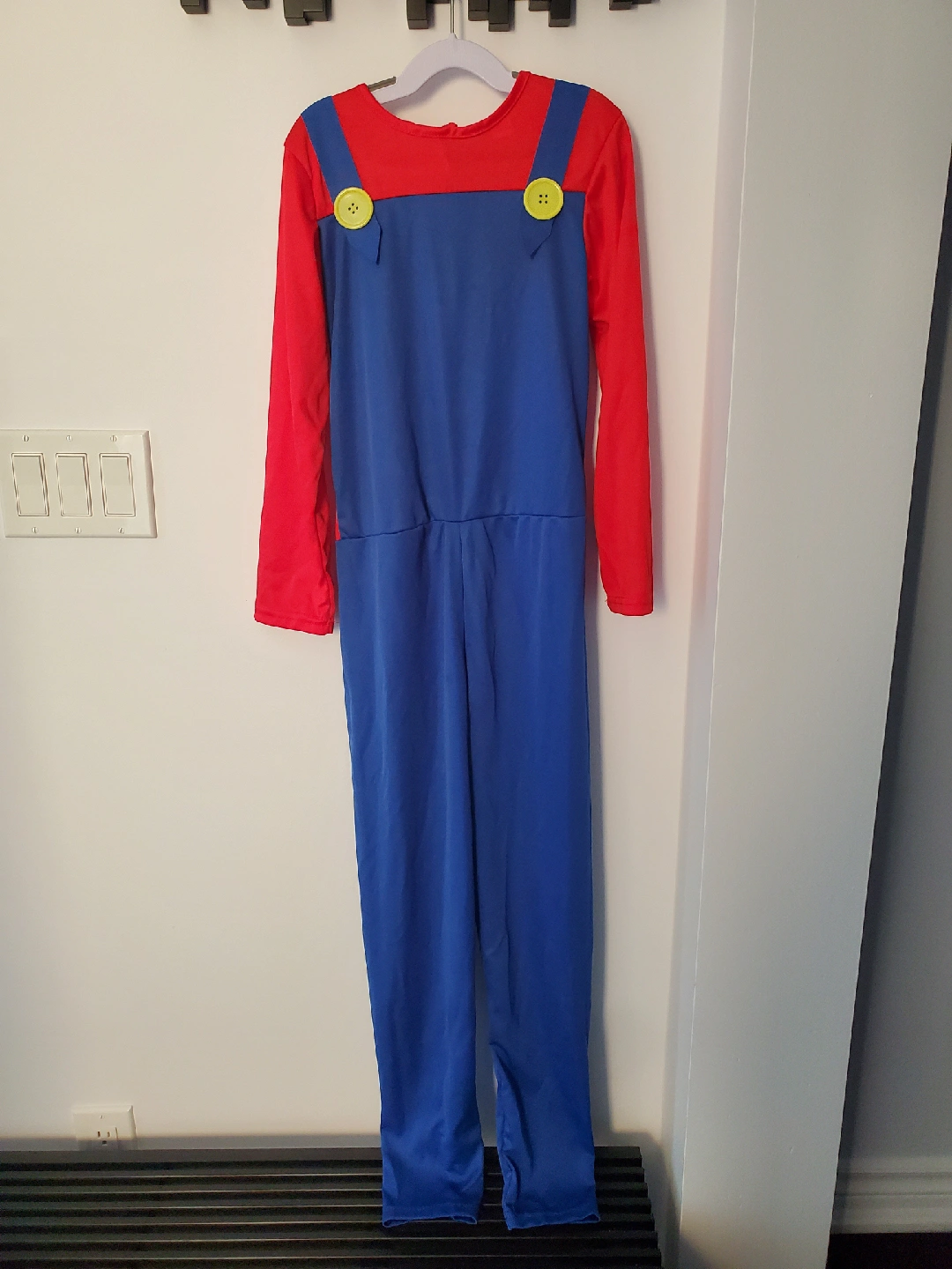 Selling a Kids Mario costume. It comes with the hat and gloves to complete the look. Perfect for Halloween or dress-up!