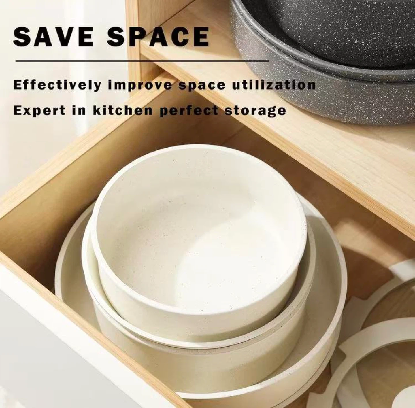 Gray Non Stick Pot and Pan Set with Removable Handle, Ceramic Cookware Set Detachable Handle, 5pcs Induction Kitchen Camping Stackable Pots Pans, Dishwasher/Oven Safe, PTFE/PFAS/PFOA Free