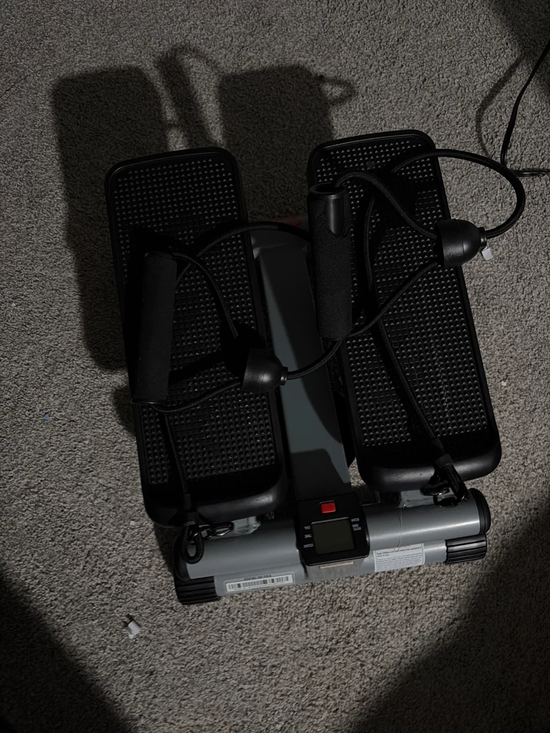 Compact mini stepper with resistance bands for a full-body workout. Features a digital display to track steps, time, and calories. This stepper is designed for convenient home use and helps improve cardio fitness. Great for a quick workout anytime!