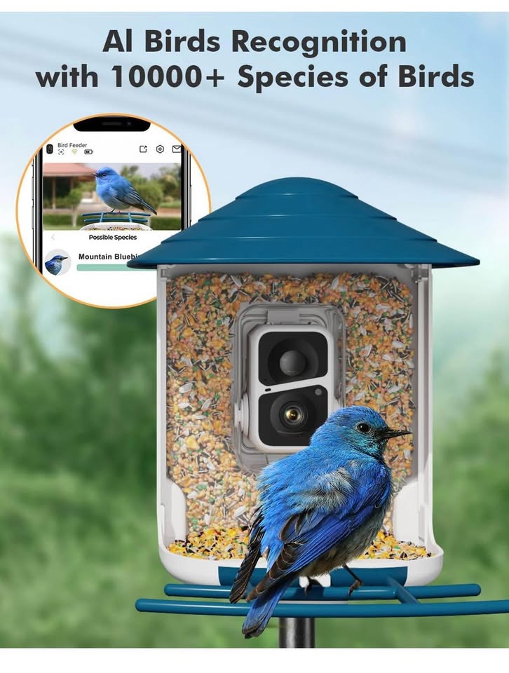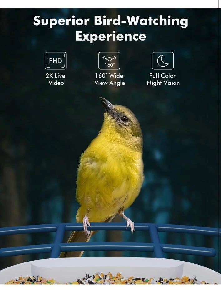 Dzees Smart Bird Feeder with Camera, Wireless Outdoor Bird Feeder, Auto Capture Video, AI Identify Bird Species, 2K HD Bird Watching with Solar Power, Ideal Gift for Parents