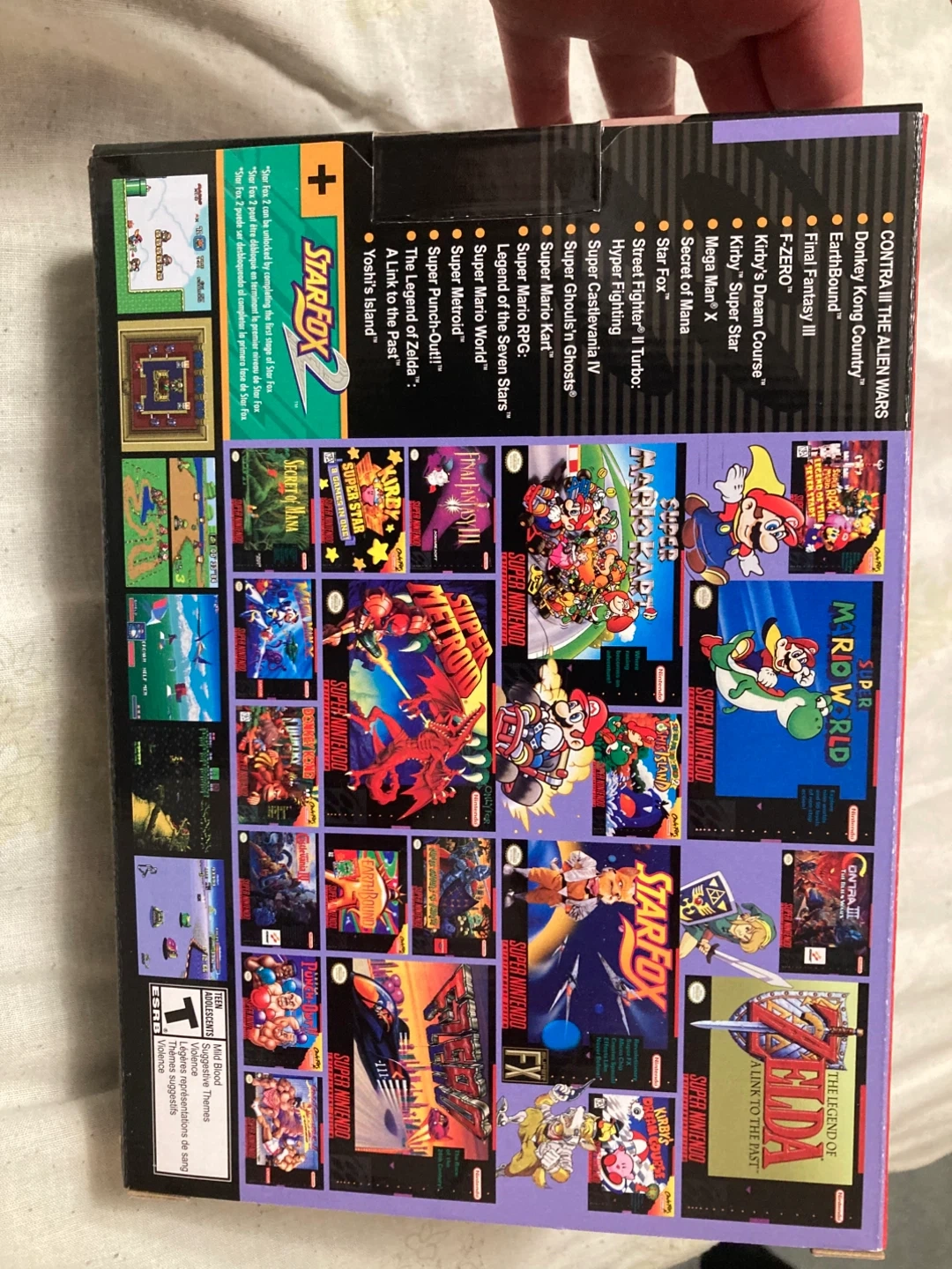Brand new! This is the Super Nintendo Entertainment System Classic mini Edition. It comes with two controllers and includes a variety of classic games built-in. It's a great way to revisit favourite retro titles!
