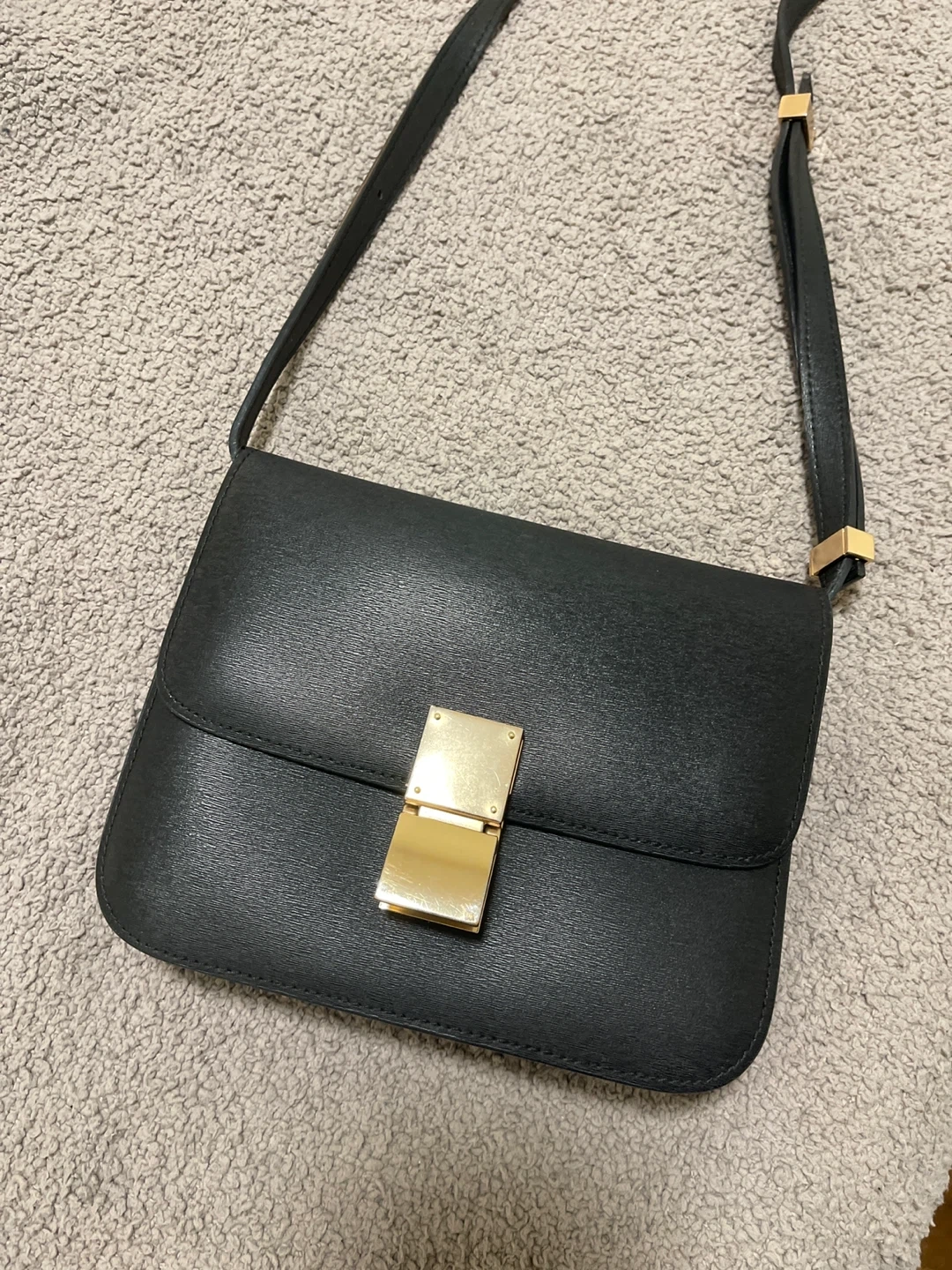 Black Shoulder Bag with Gold Clasp