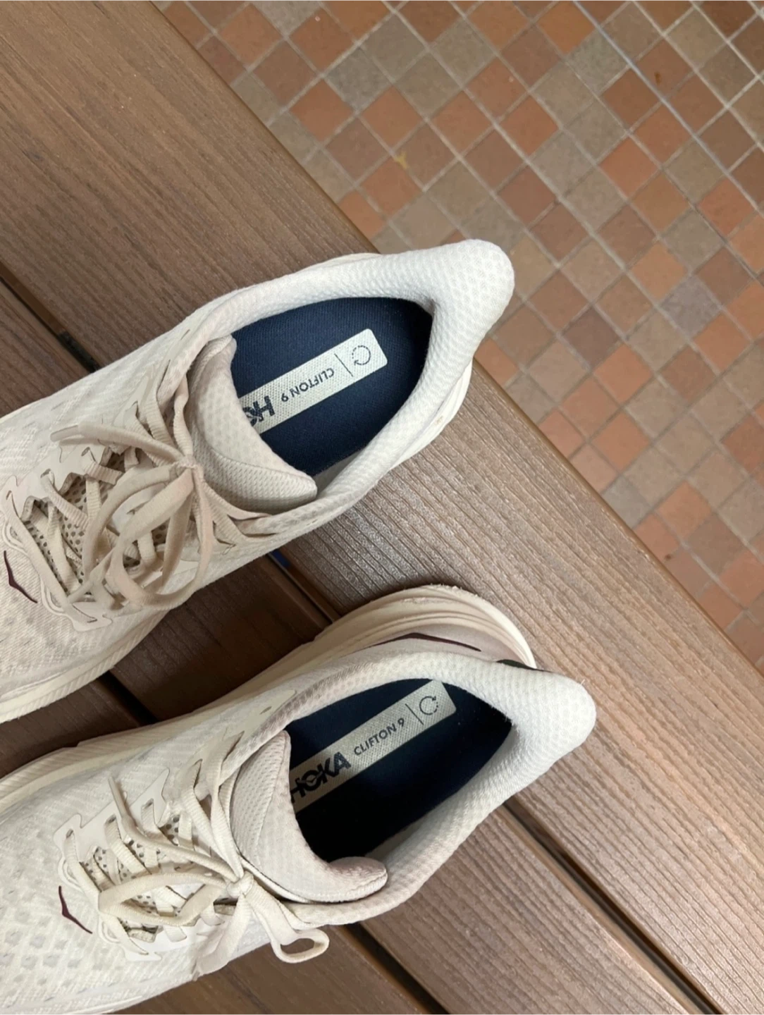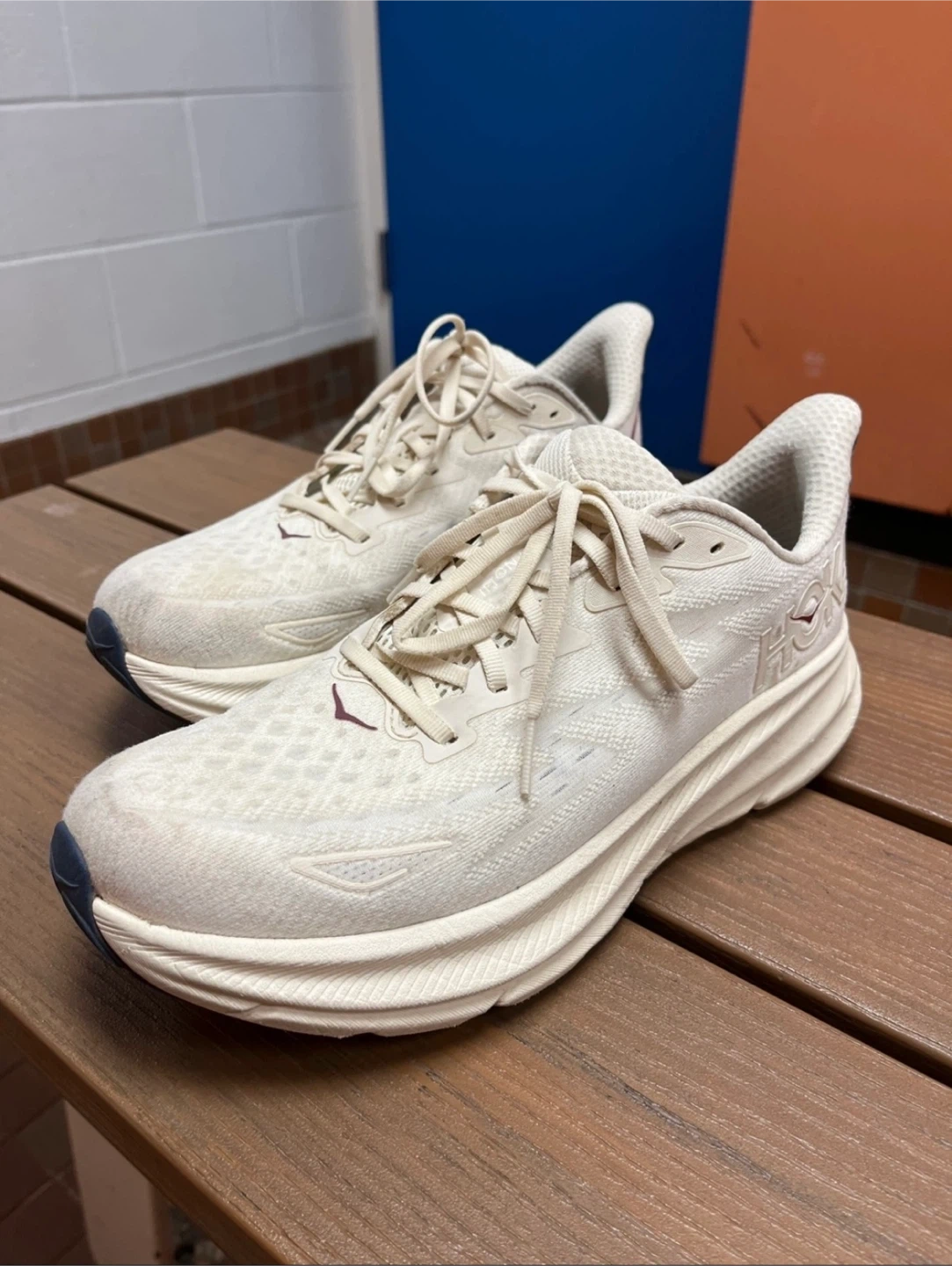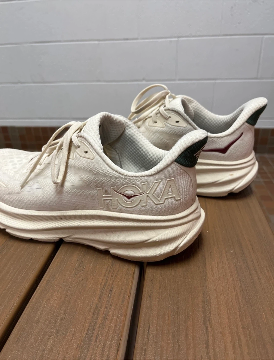Selling a pair of Hoka Clifton 9 men’s running shoes. They are a US size 10. These shoes are known for their lightweight feel and comfortable cushioning, perfect for running or everyday wear