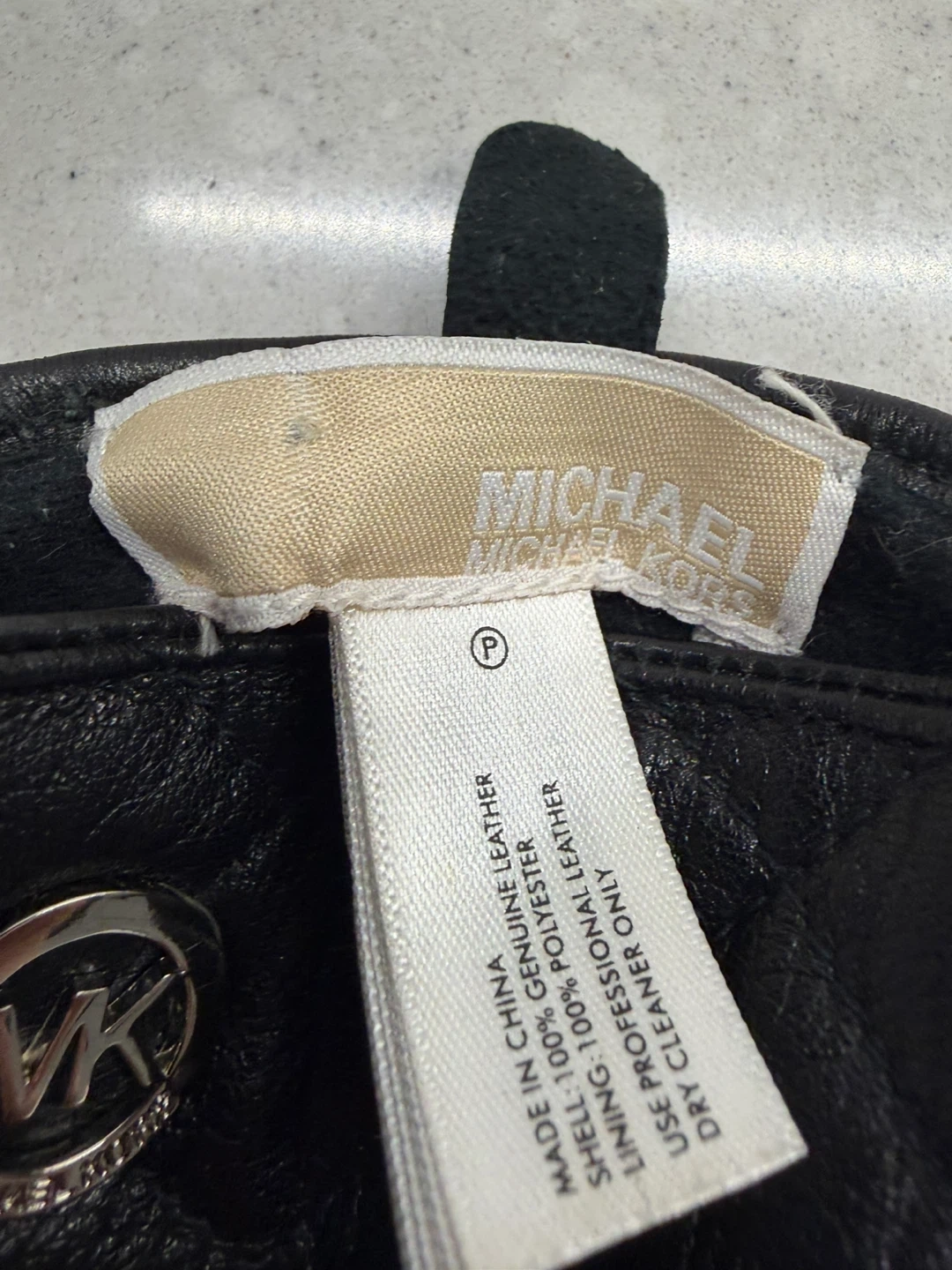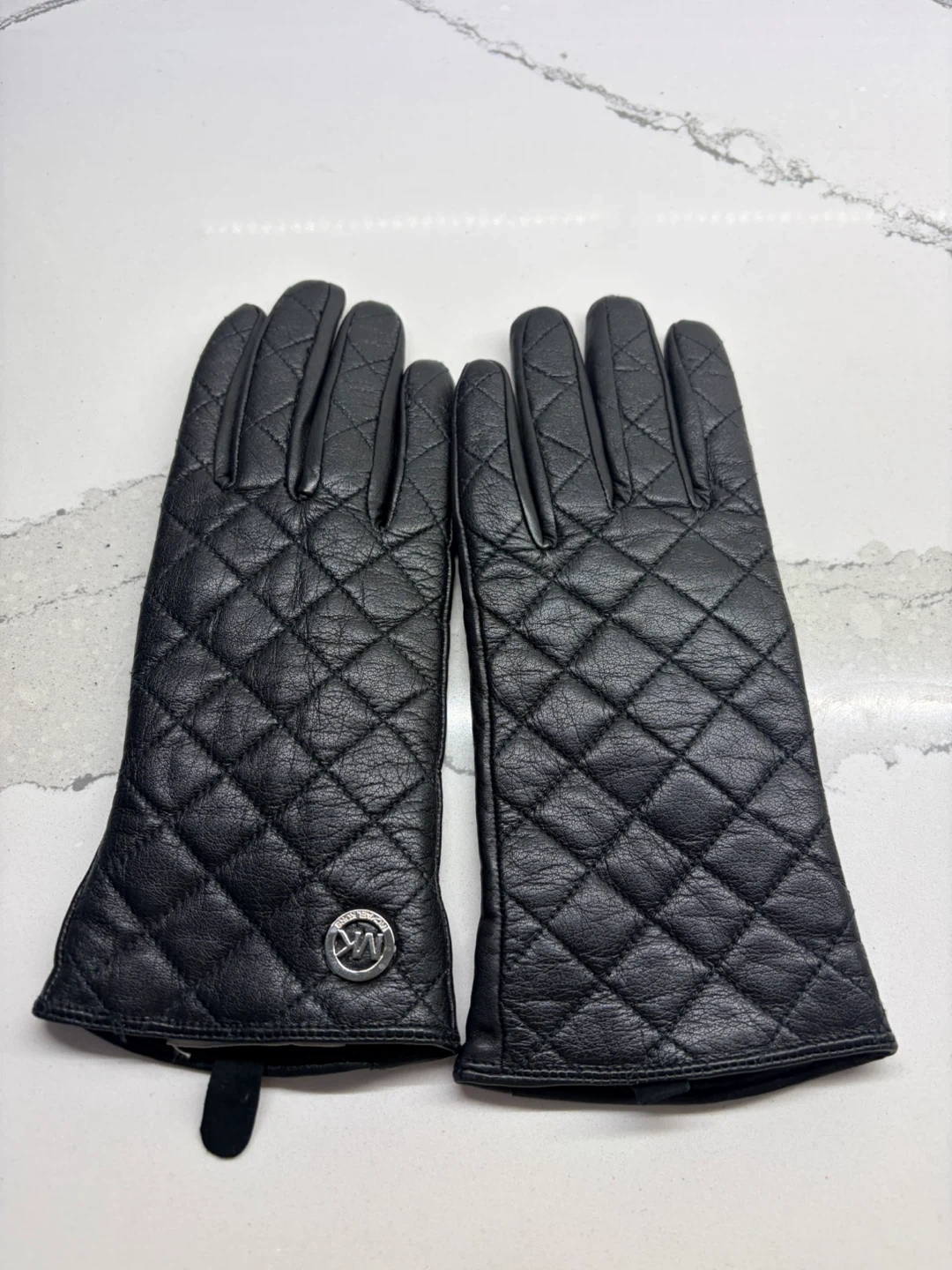 These Michael Kors gloves are made from genuine leather with a quilted design. The lining is 100% polyester. They're a size XL but fits smaller. Dry clean only.