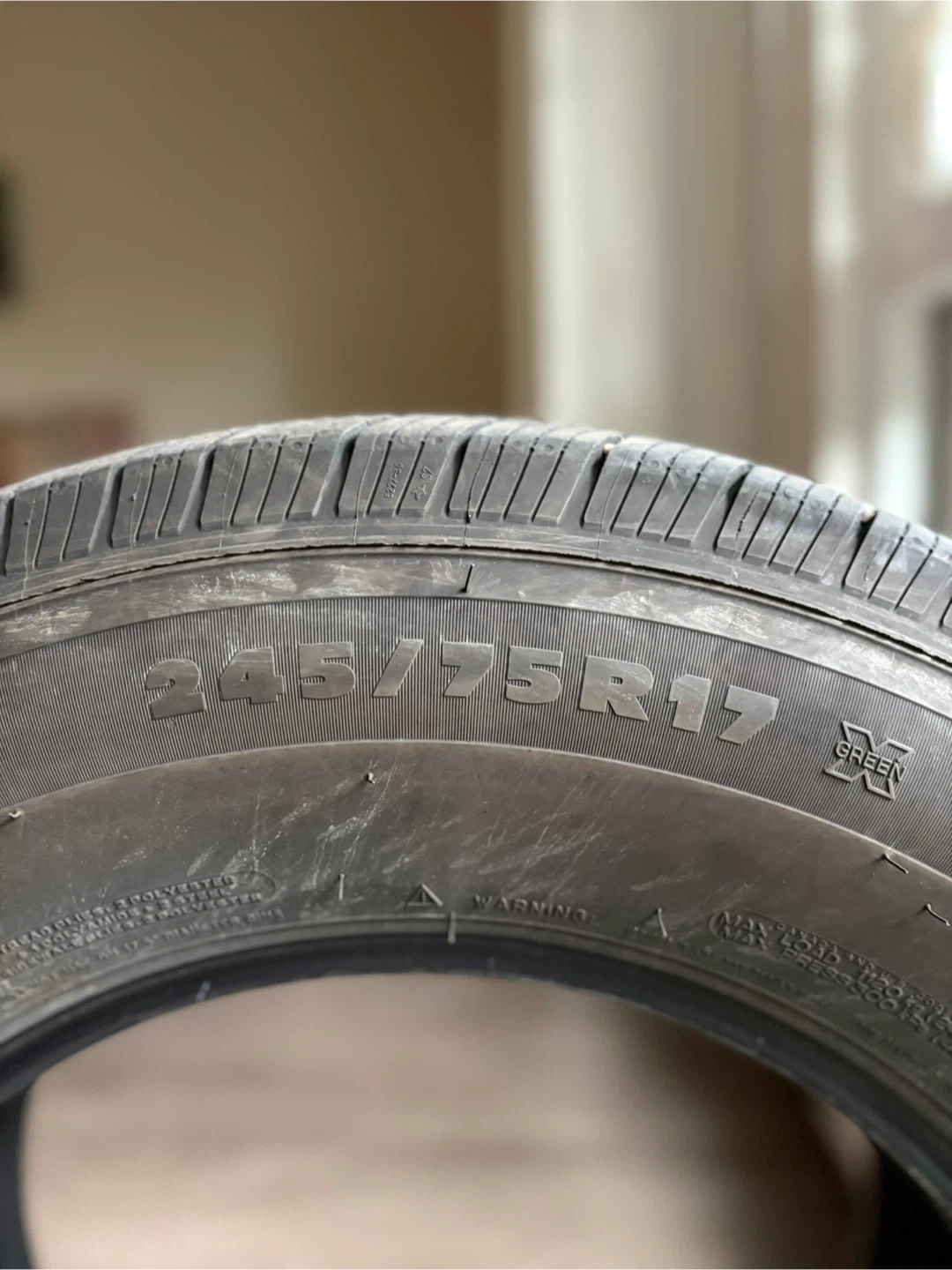 Michelin LTX M/S2 tire with a size of 245/75R17. Selling all 5 tires, perfect for replacing a damaged or worn one. It's a reliable choice for your vehicle.
