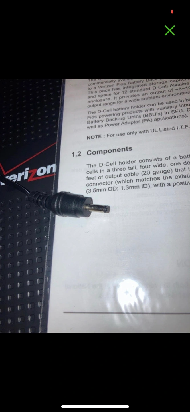 1000+Verizon backup battery. Includes power cable. Use is for supplementing power to a Verizon Fios Battery Back-Up unit (BBU) or with listed Verizon equipment only. Contains 12 D-cell battery slots. Batteries not included. Brand New - never used.