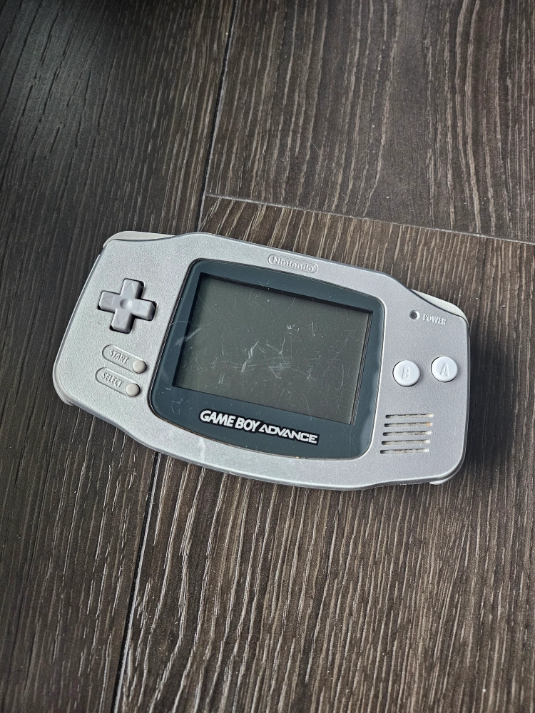 Used Game Boy Advance SP. Silver colour. Screen has minor scratches. Batteries included. Model number AGS-001. No games or accessories included. Tested and works with sound.