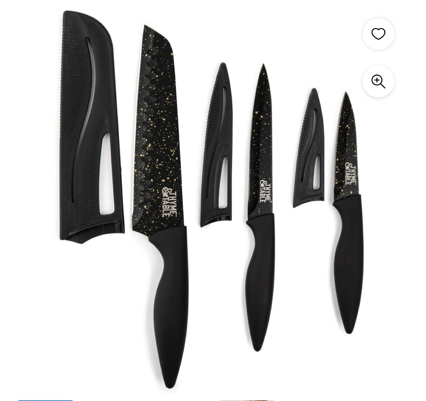 Thyme & Table 4-Piece Knife Set - Black with Gold Specks