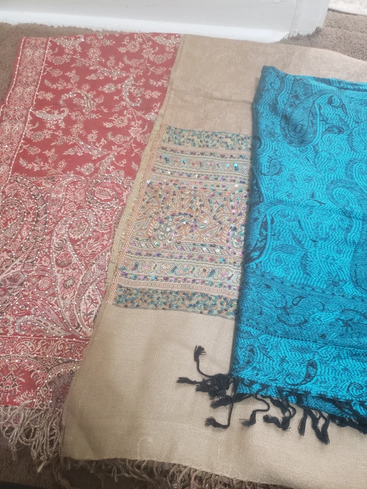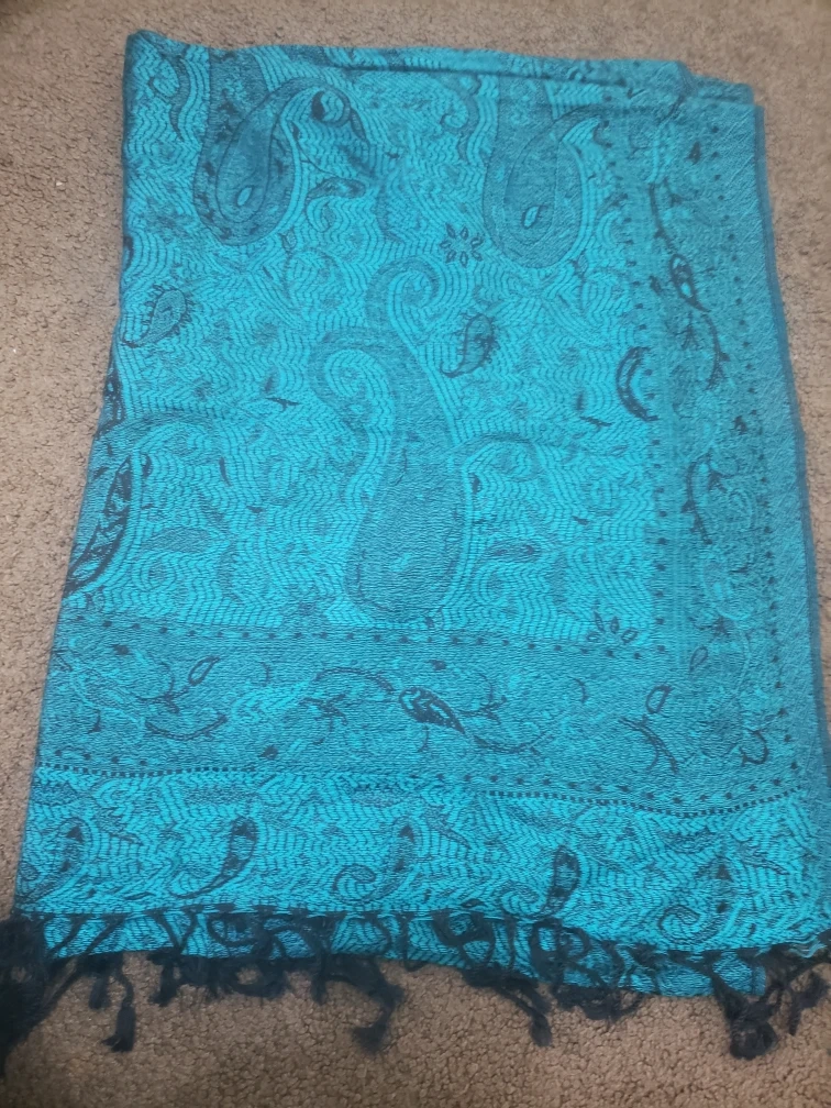 17Lightweight teal shawl. . Fringed edges. Soft material. all for 26