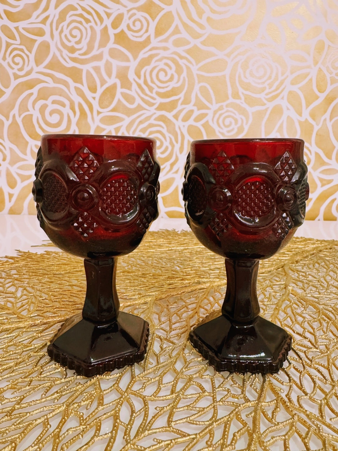 Avon 1876 Cape Cod Ruby Red Glass Goblets, Set of 2