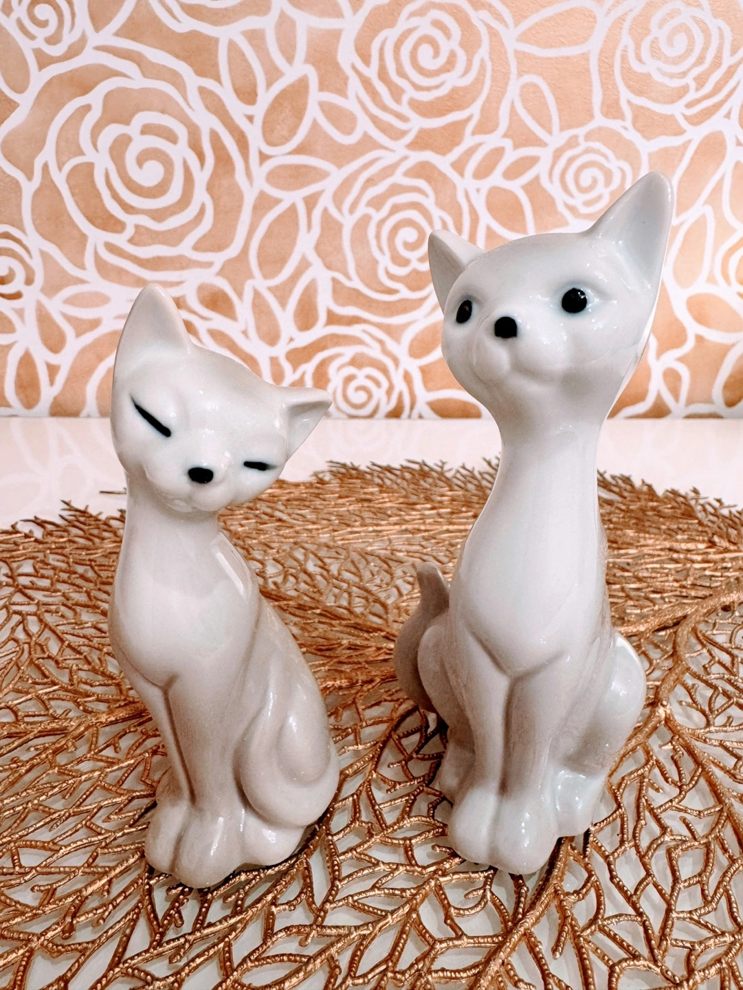Vintage White Smokey Grey Siamese Cat Figurines, Otagiri Japa
