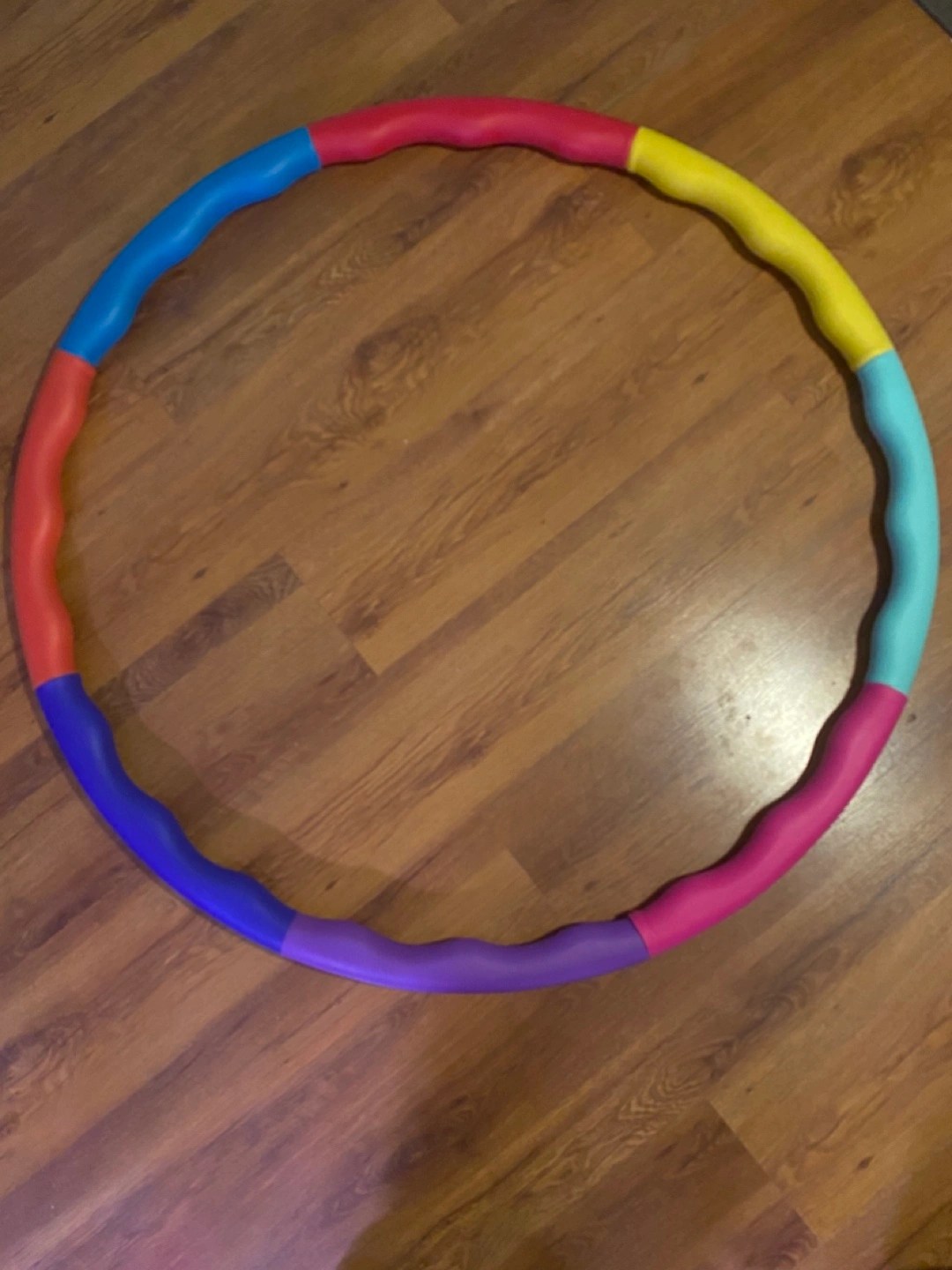 Weighted hula hoop, colourful design. Great for exercise and fitness. Sections easily detach for storage.