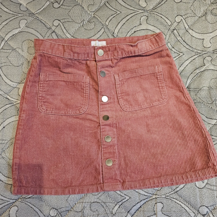 10Dusty rose corduroy mini skirt. Size 12. Button front. Two pockets. Excellent condition.